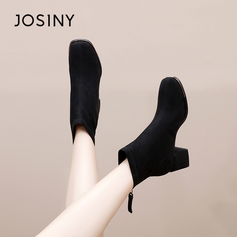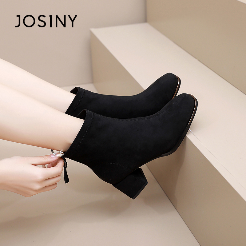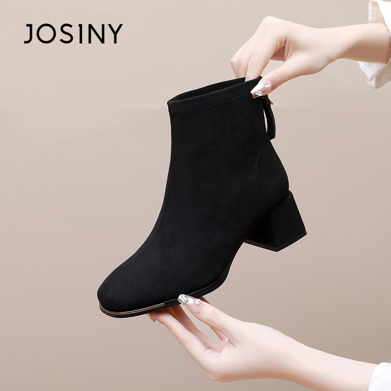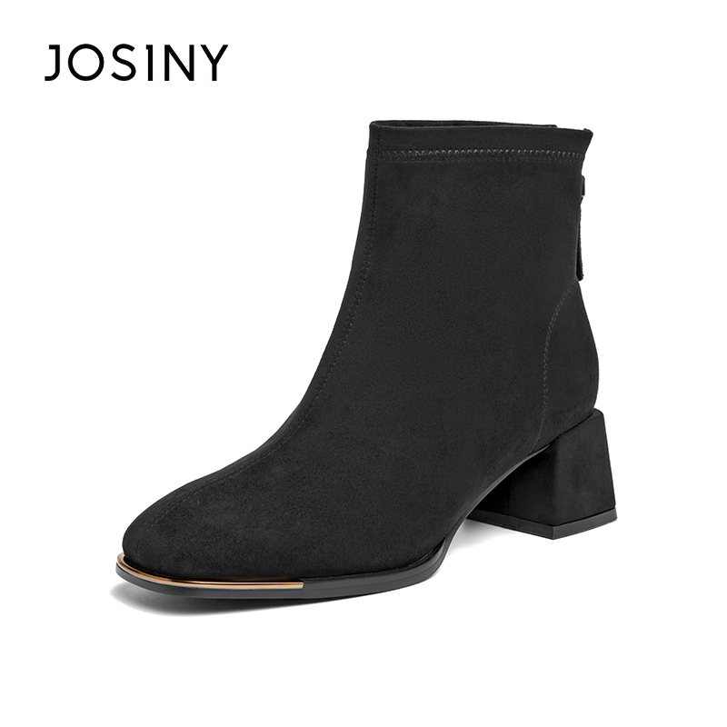 卓诗尼2025秋冬新款后拉链时装靴潮流粗跟女靴时尚舒适气质短靴女