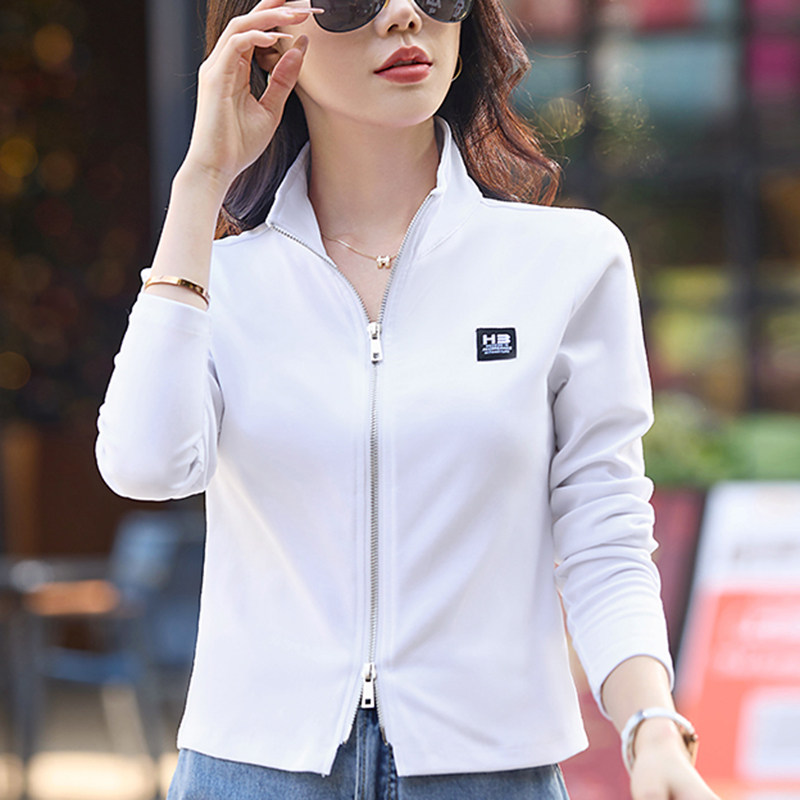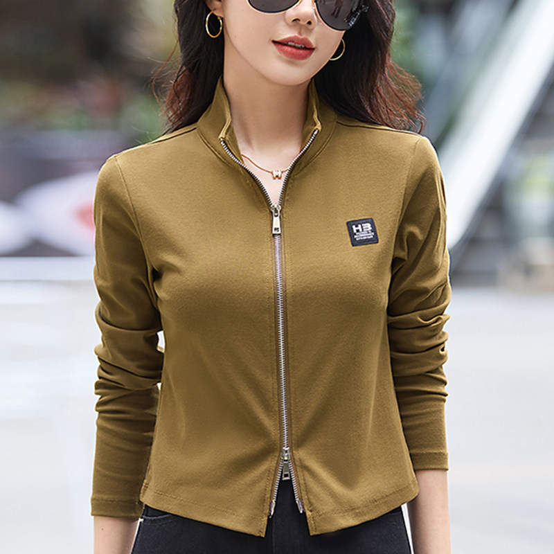 薄短款外套卫衣女春秋立领开衫拉链运动打底小衫纯棉长袖t恤上衣