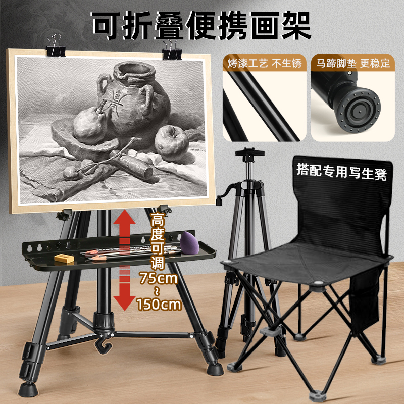 马利素描工具套装全套画架画板美术生绘画专用画画初学者入门中考考试用品艺考成人画具支架式可折叠素描炭笔