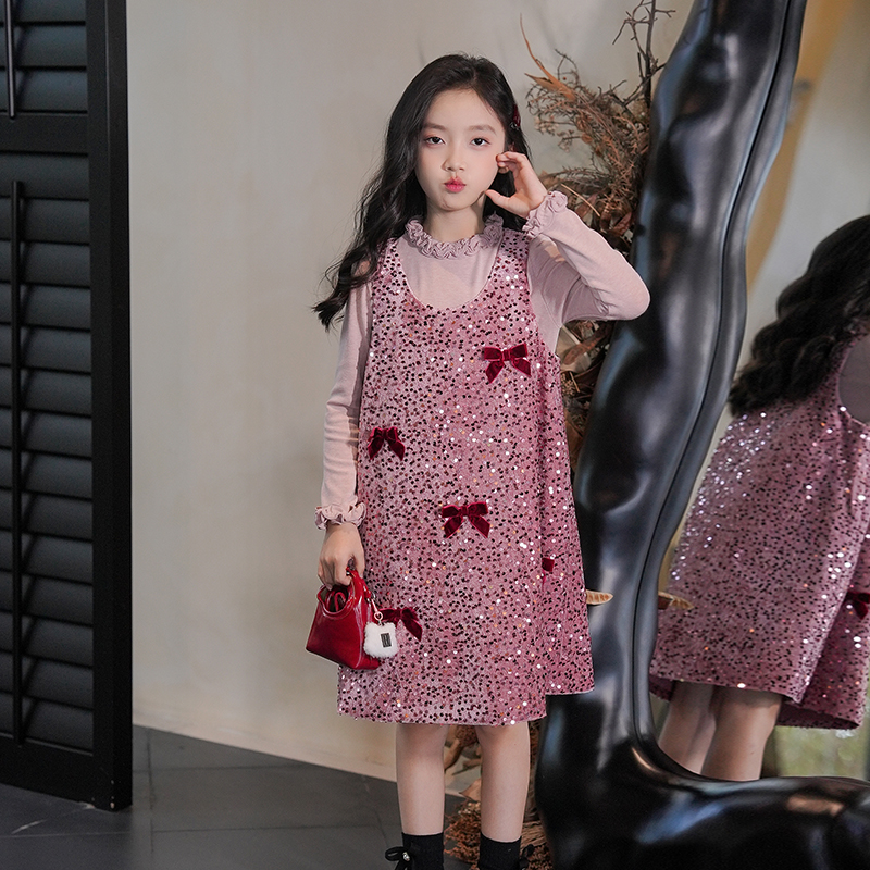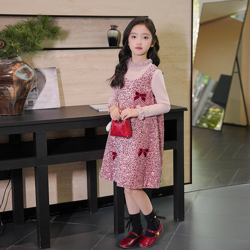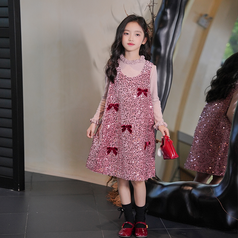 女童连衣裙小女孩珠片丝绒蝴蝶结背心裙2025新款洋气公主礼服裙子