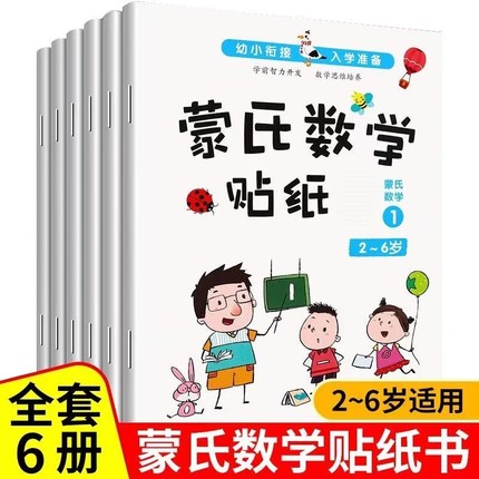 蒙氏数学宝宝0到3-6岁贴纸书左右脑大开发益智游戏书婴幼儿思维训练专注力早教贴贴画2岁儿童粘贴纸早教书籍绘本拼音认知全脑识字