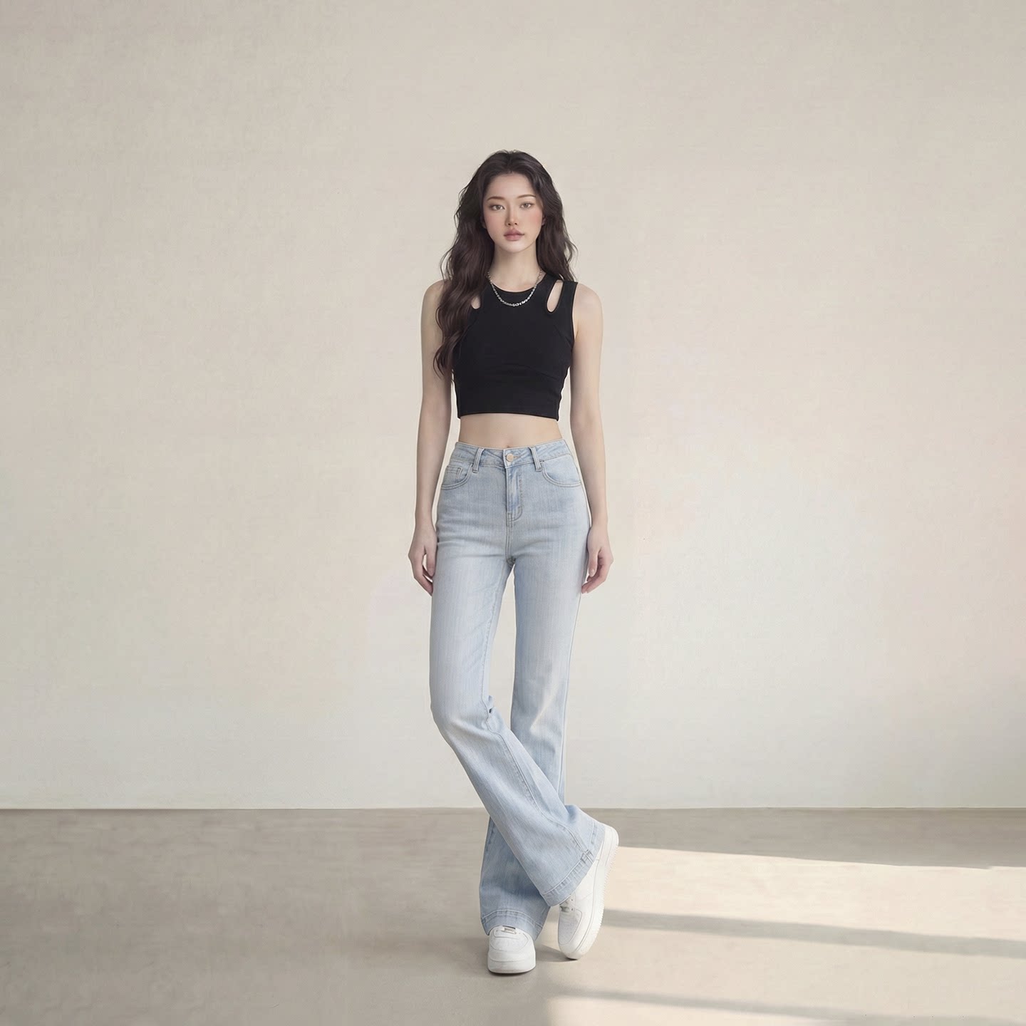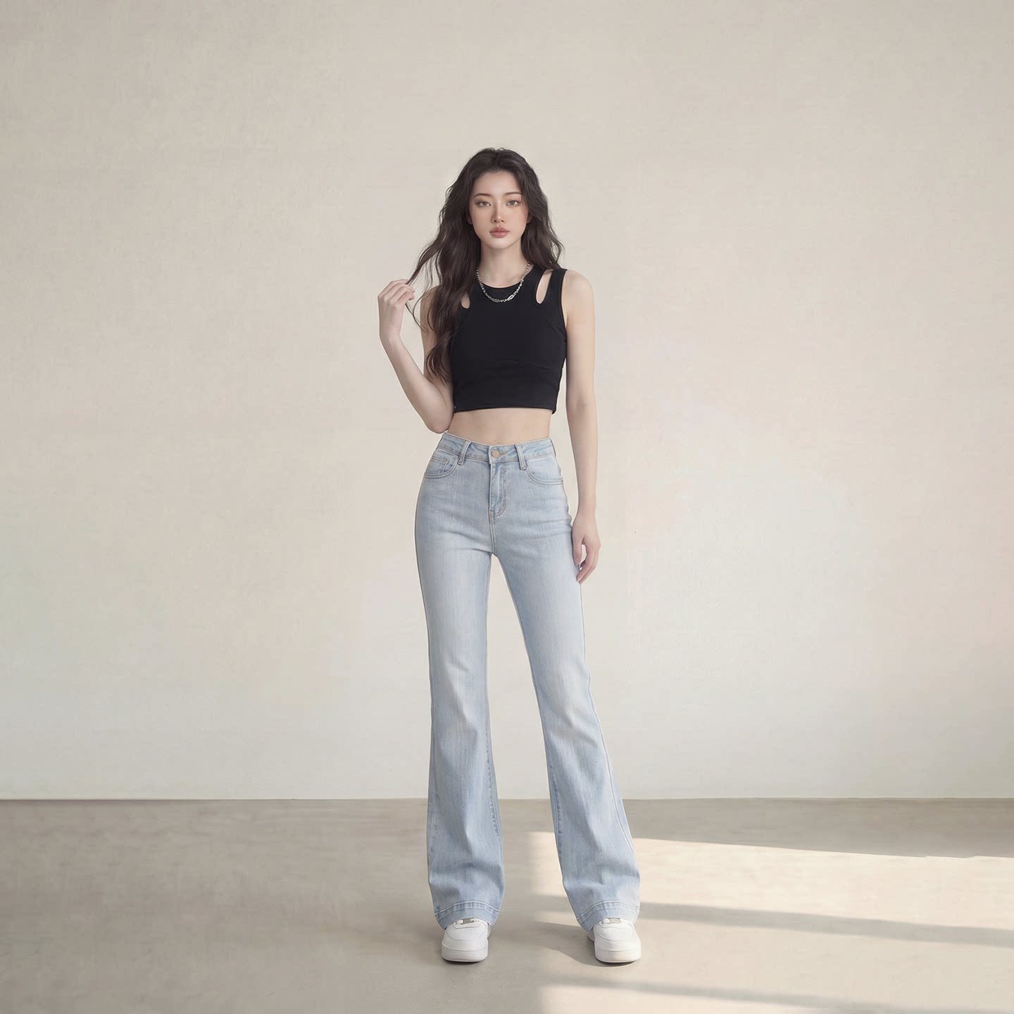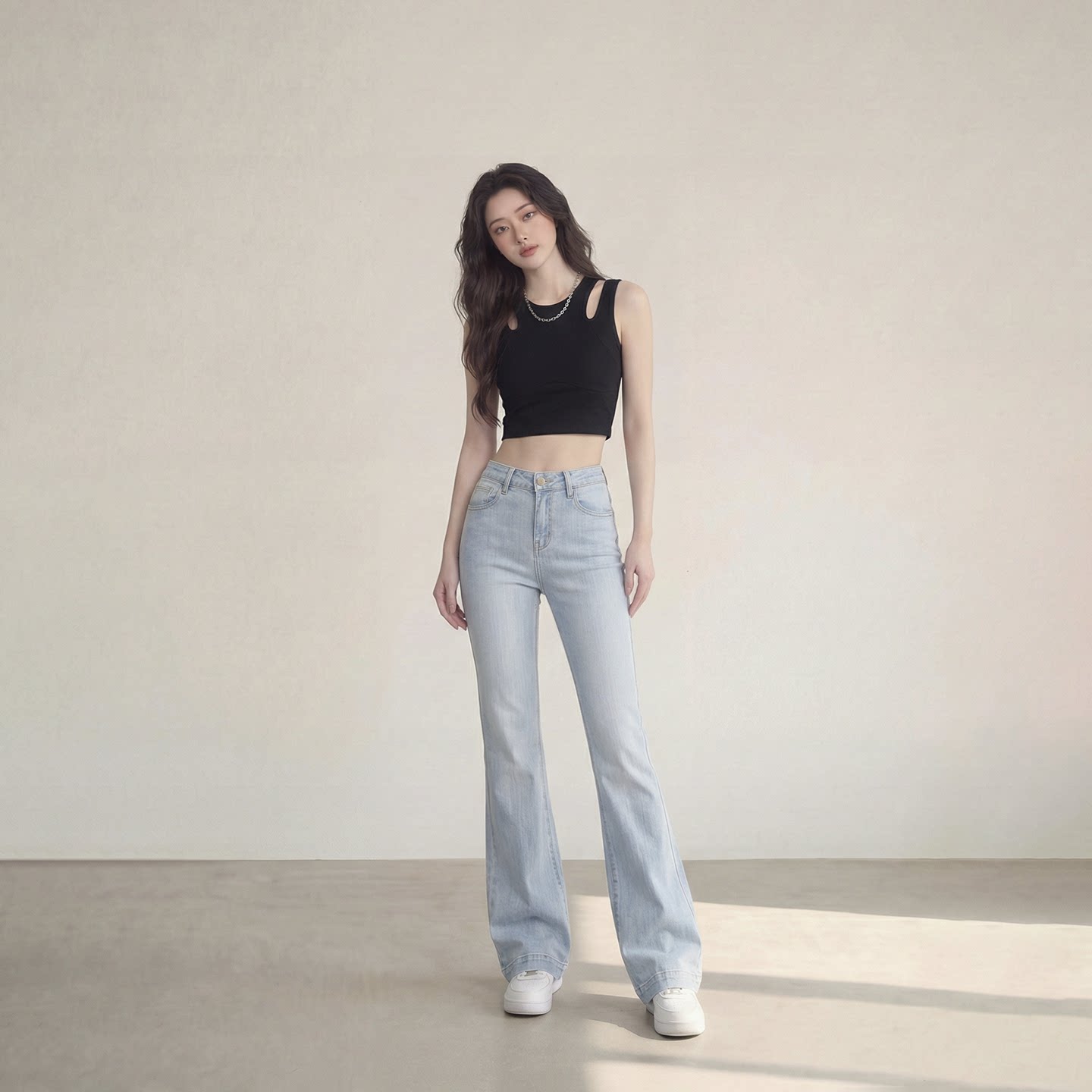 艾格高腰微喇显瘦拖地牛仔裤