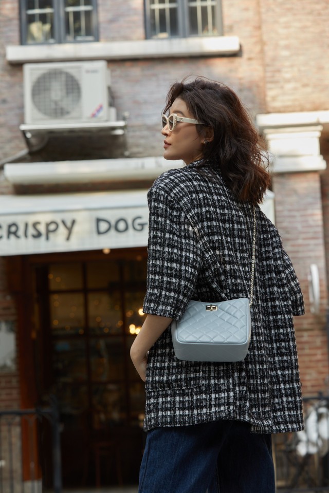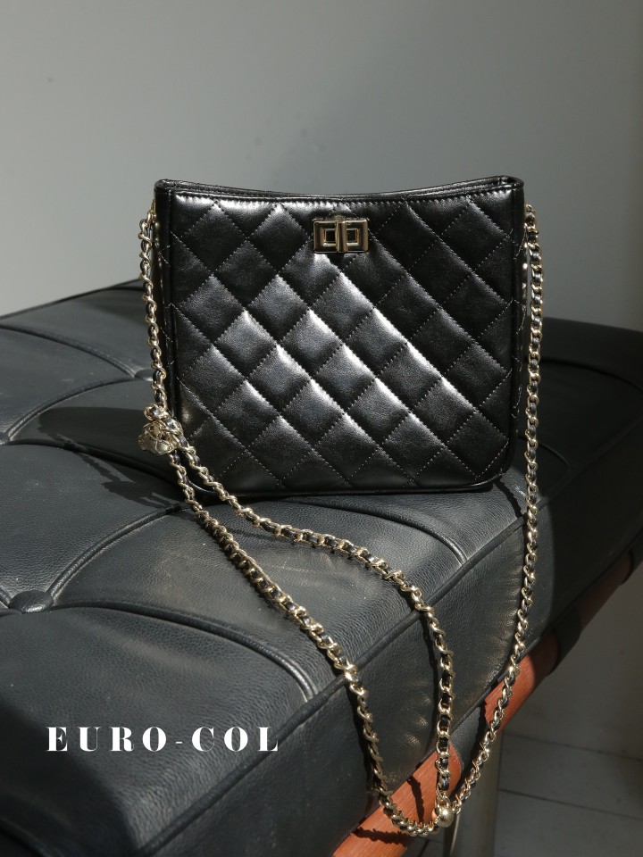真皮水桶包菱格链条包2025欧尚典新款流浪包小金球单肩斜挎小包女