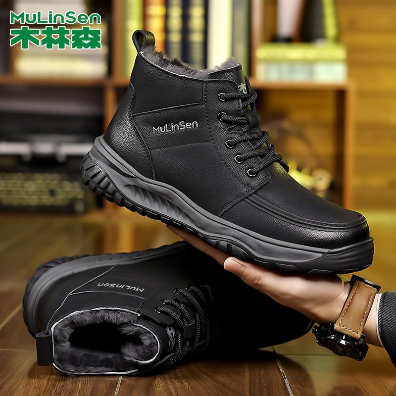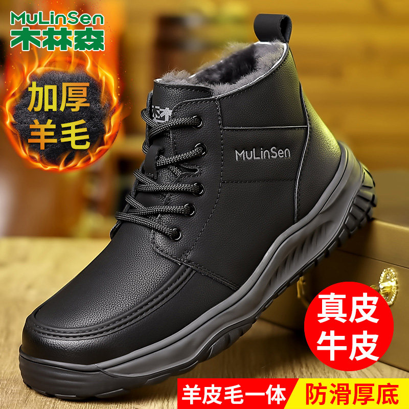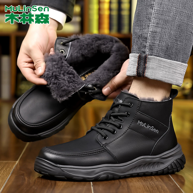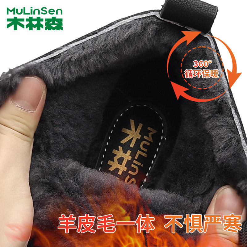 木林森棉鞋男款冬季保暖加绒东北大棉鞋男羊毛皮毛一体时尚雪地靴