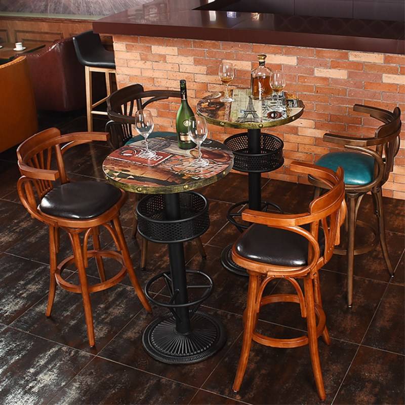 现代简约高吧椅旋转高脚凳吧台椅美式乡村酒吧实木家用小户型吧台
