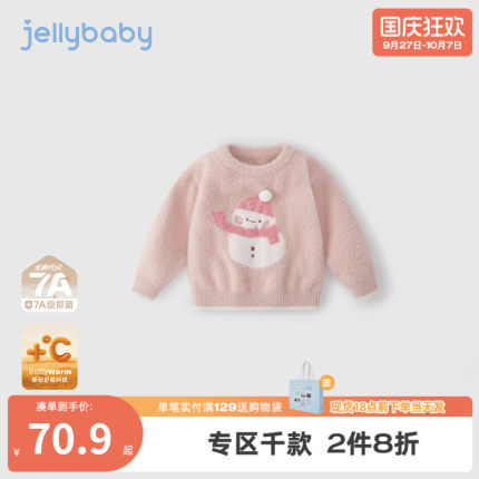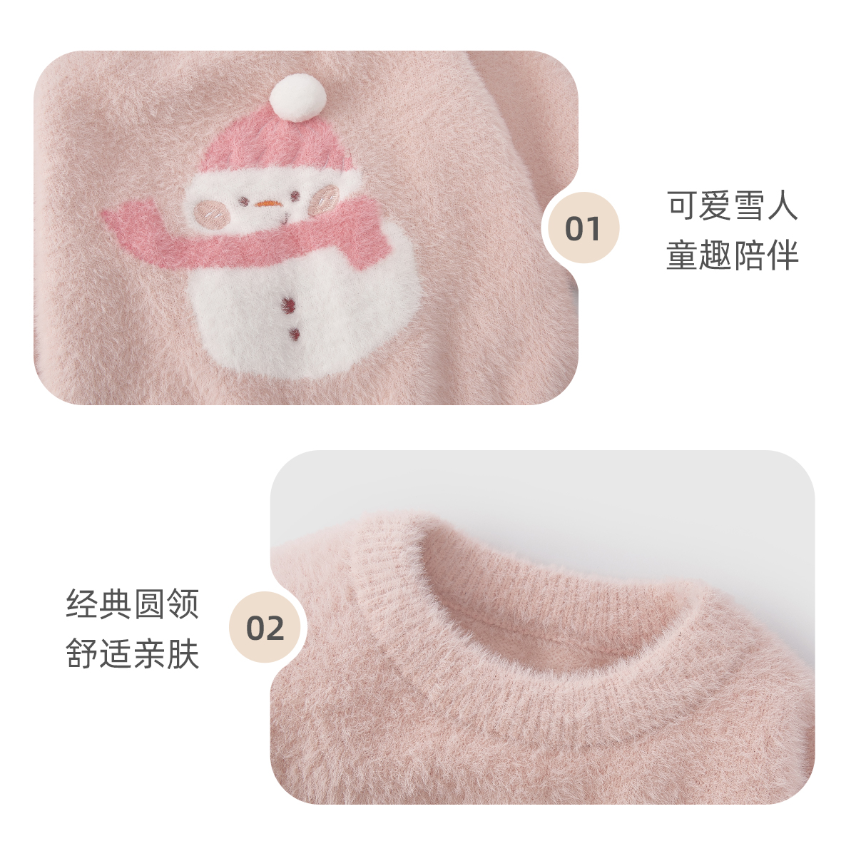 [抗菌远红外]女童毛衣秋冬宝宝粉色套头女小童上衣新款儿童针织衫