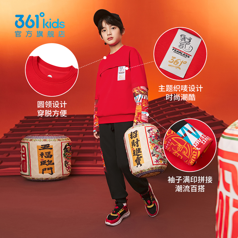 361童装 男童套头卫衣2025春季新款中大童圆领运动上衣休闲长袖男
