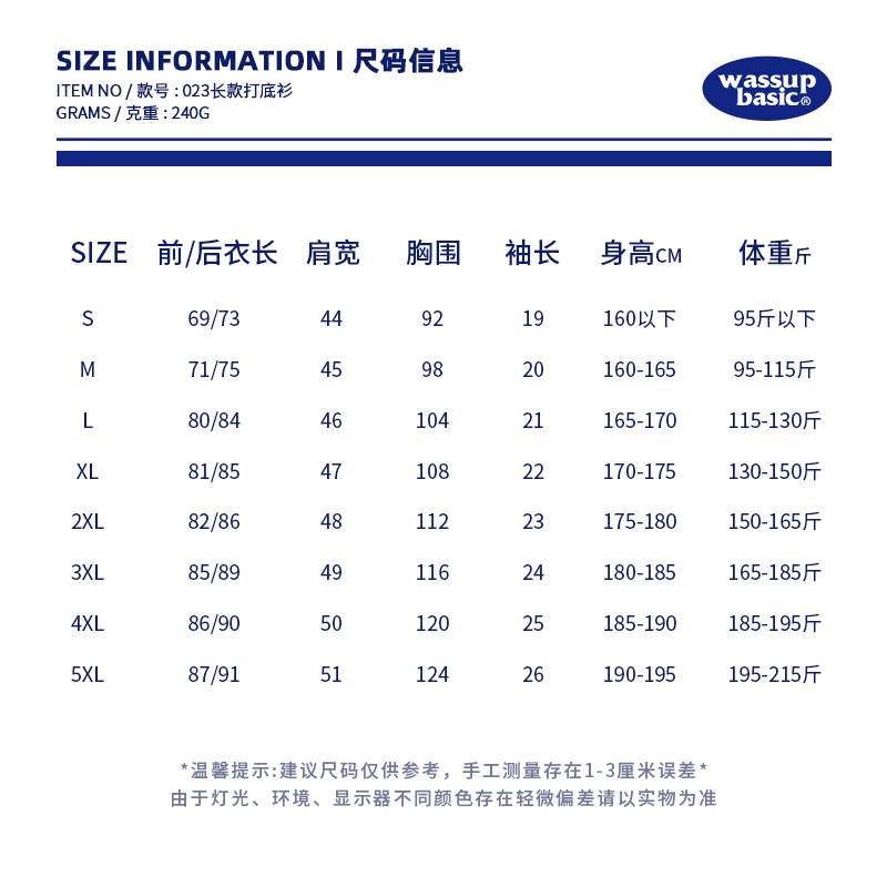 wassup basic加长款240g重磅纯棉纯色短袖圆弧下摆男女T恤打底TEE