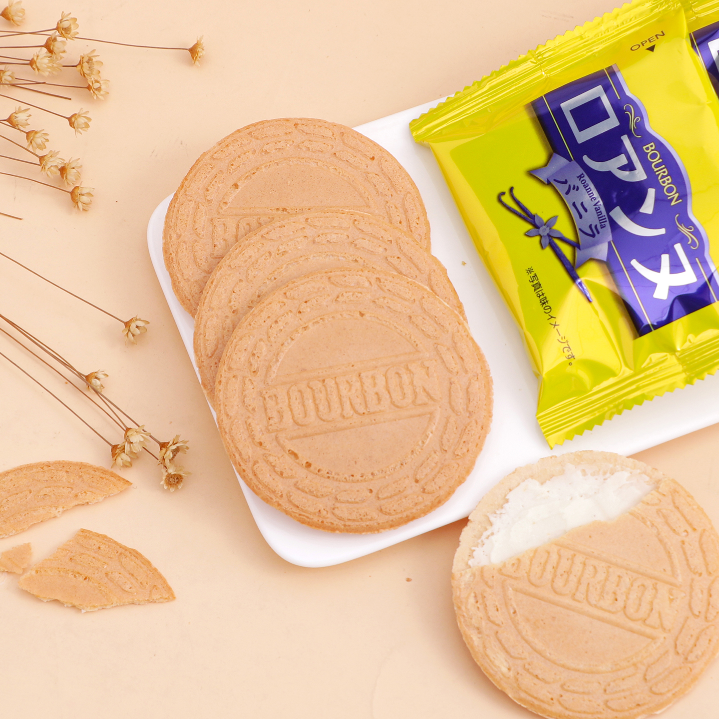 日本原装进口零食BOURBON波路梦布尔本香草味夹心饼干休闲食品