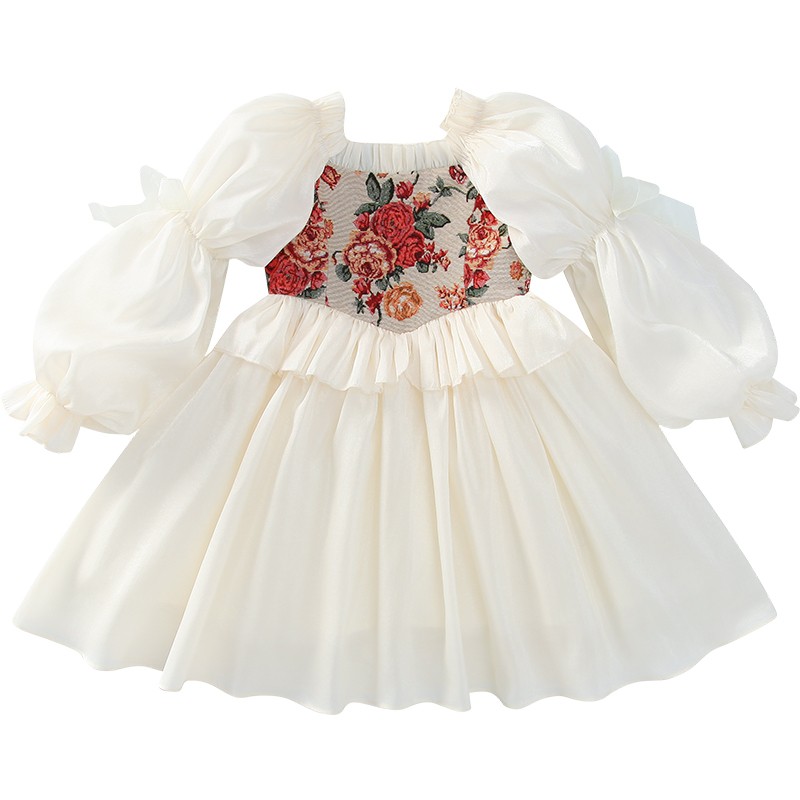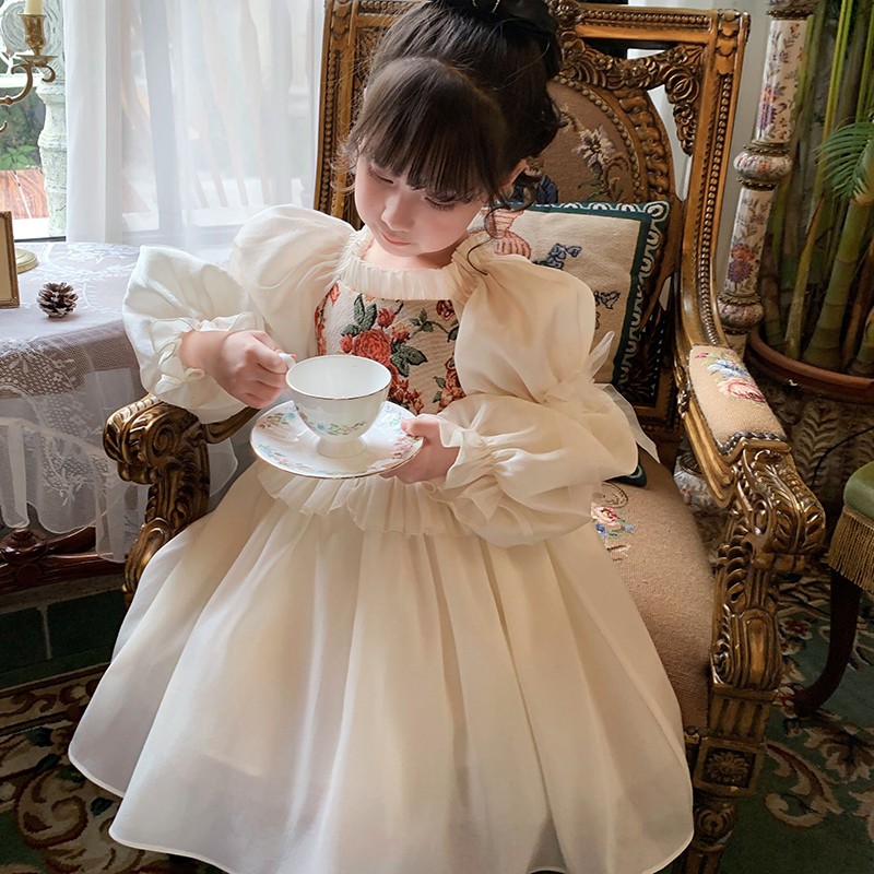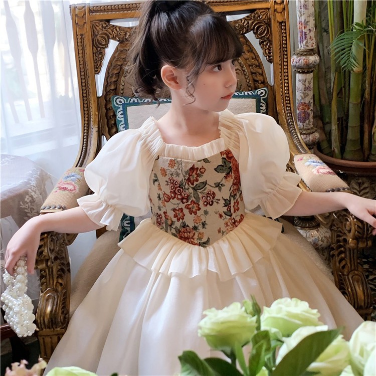 女童连衣裙夏装新款洋气儿童复古刺绣A字裙子小女孩泡泡袖公主裙