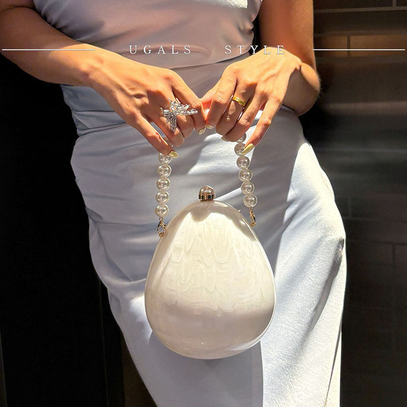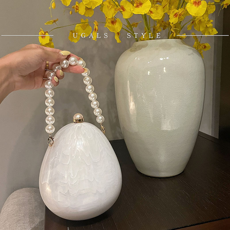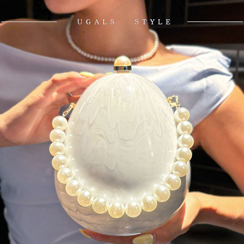 UGALS名媛复古亚克力水波纹鹅蛋盒子串珠链条晚宴手拿斜挎小包包