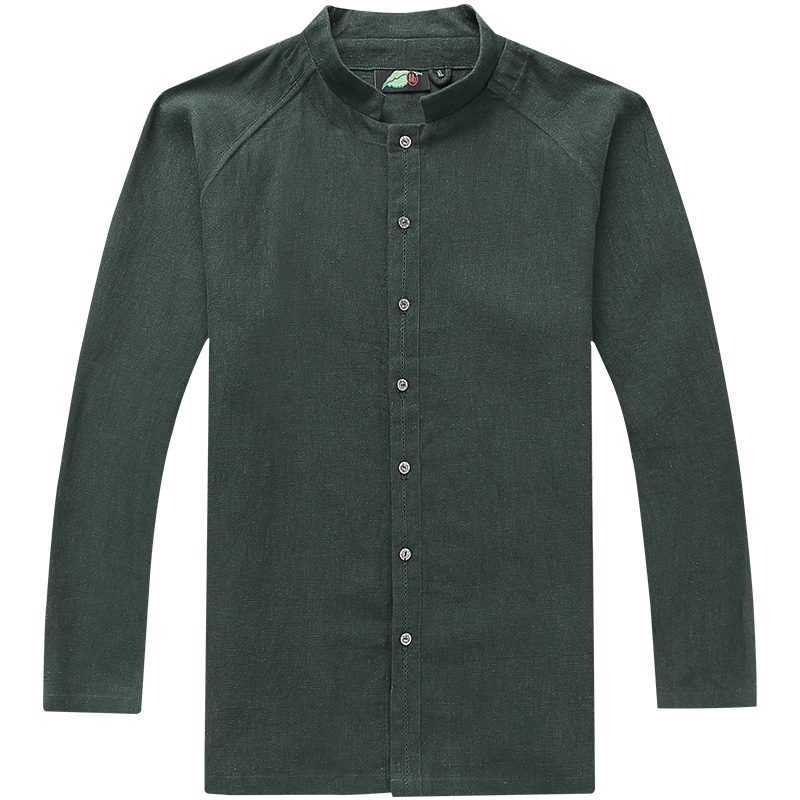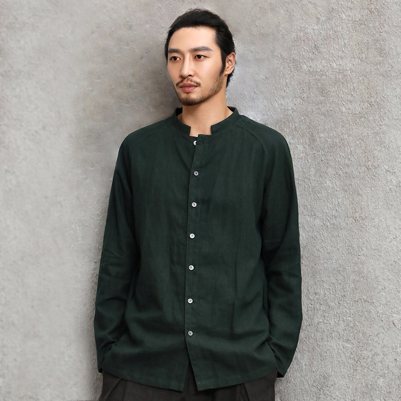 楠中国风男装麻衬衫男春季上衣男新中式立领休闲宽松亚麻衬衣名迹
