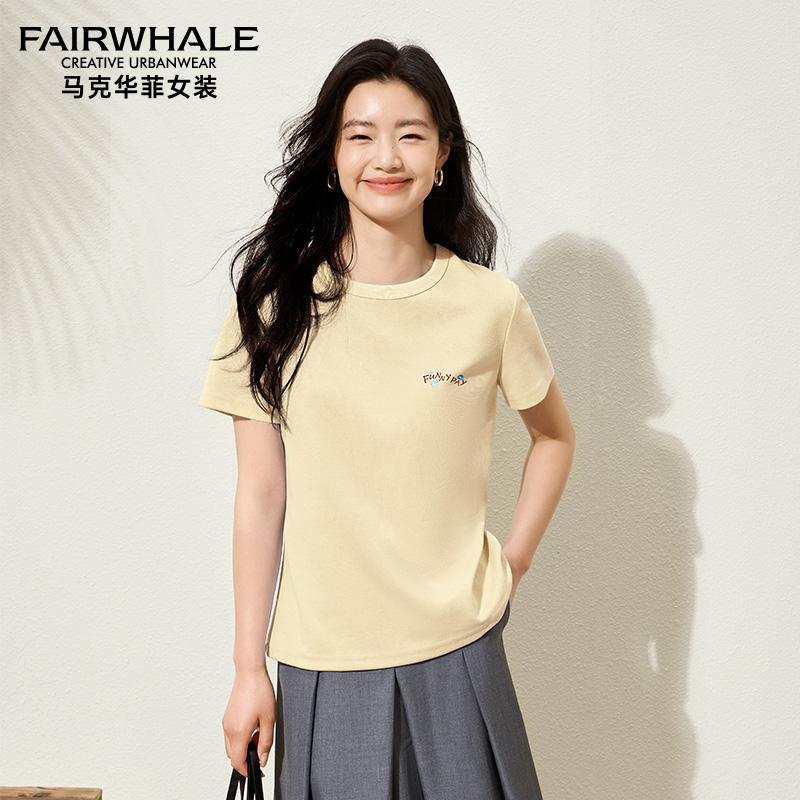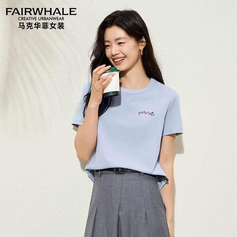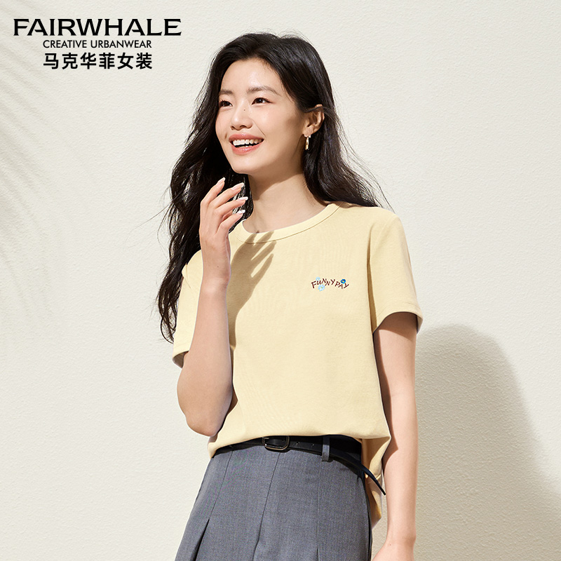 马克华菲7A抗菌短袖T恤女夏季新款基础款圆领印花休闲百搭打底衫