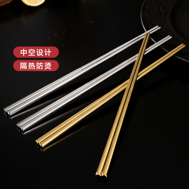 韩式304不锈钢筷子加长油炸火锅筷防滑方形烤肉筷商用餐厅餐具筷