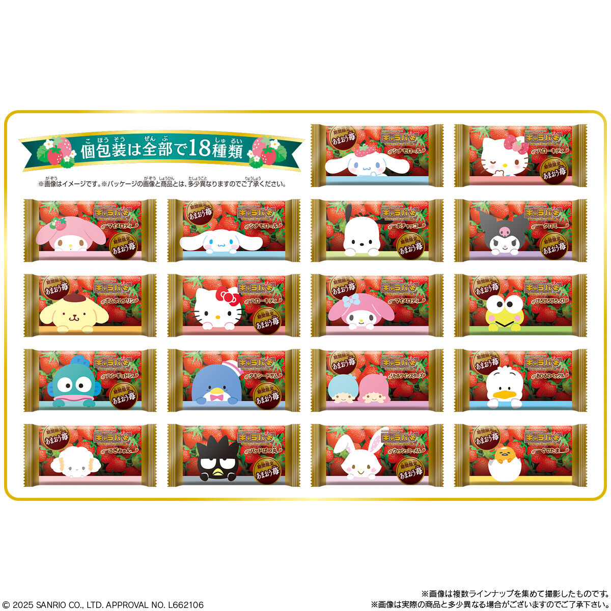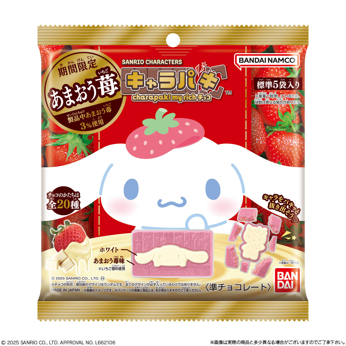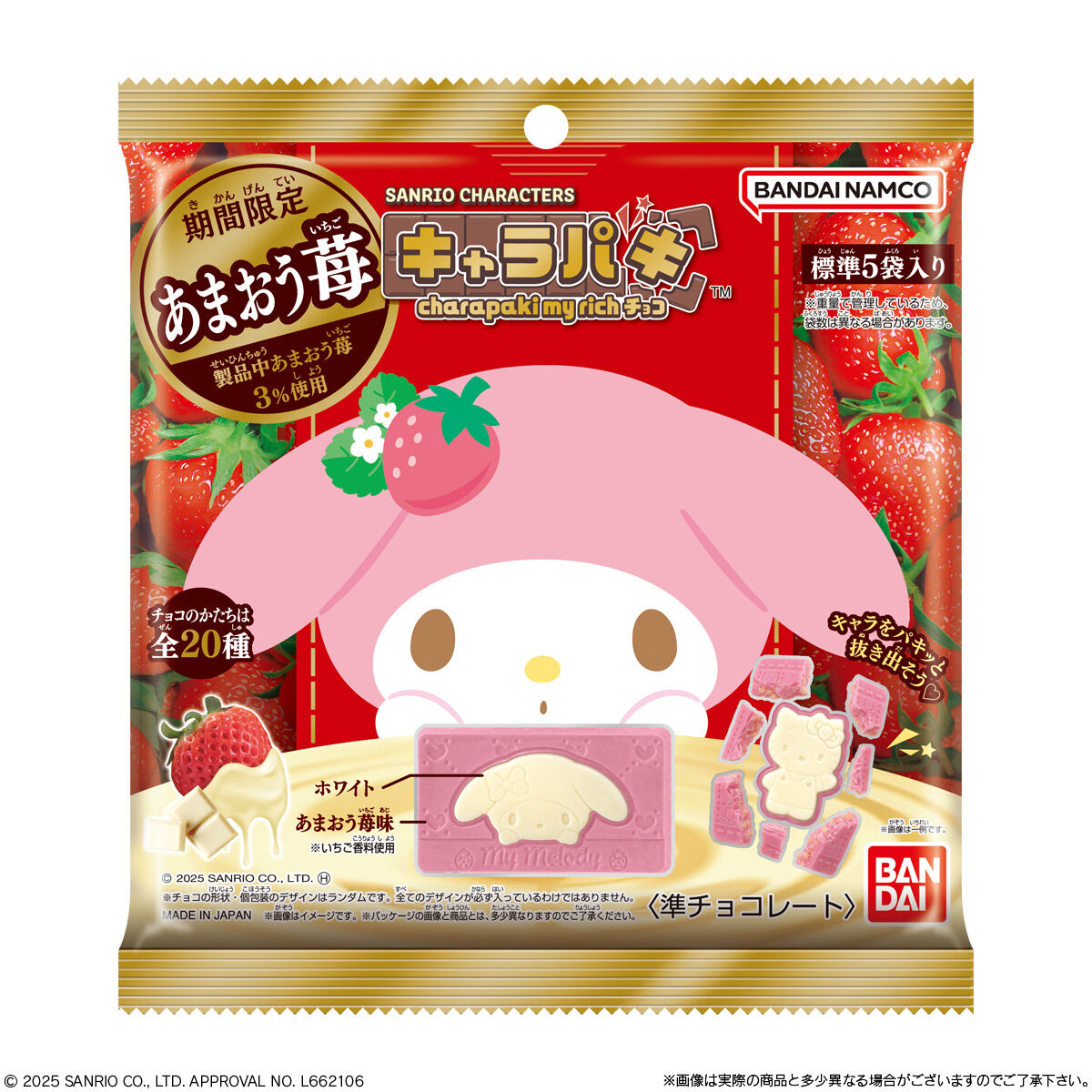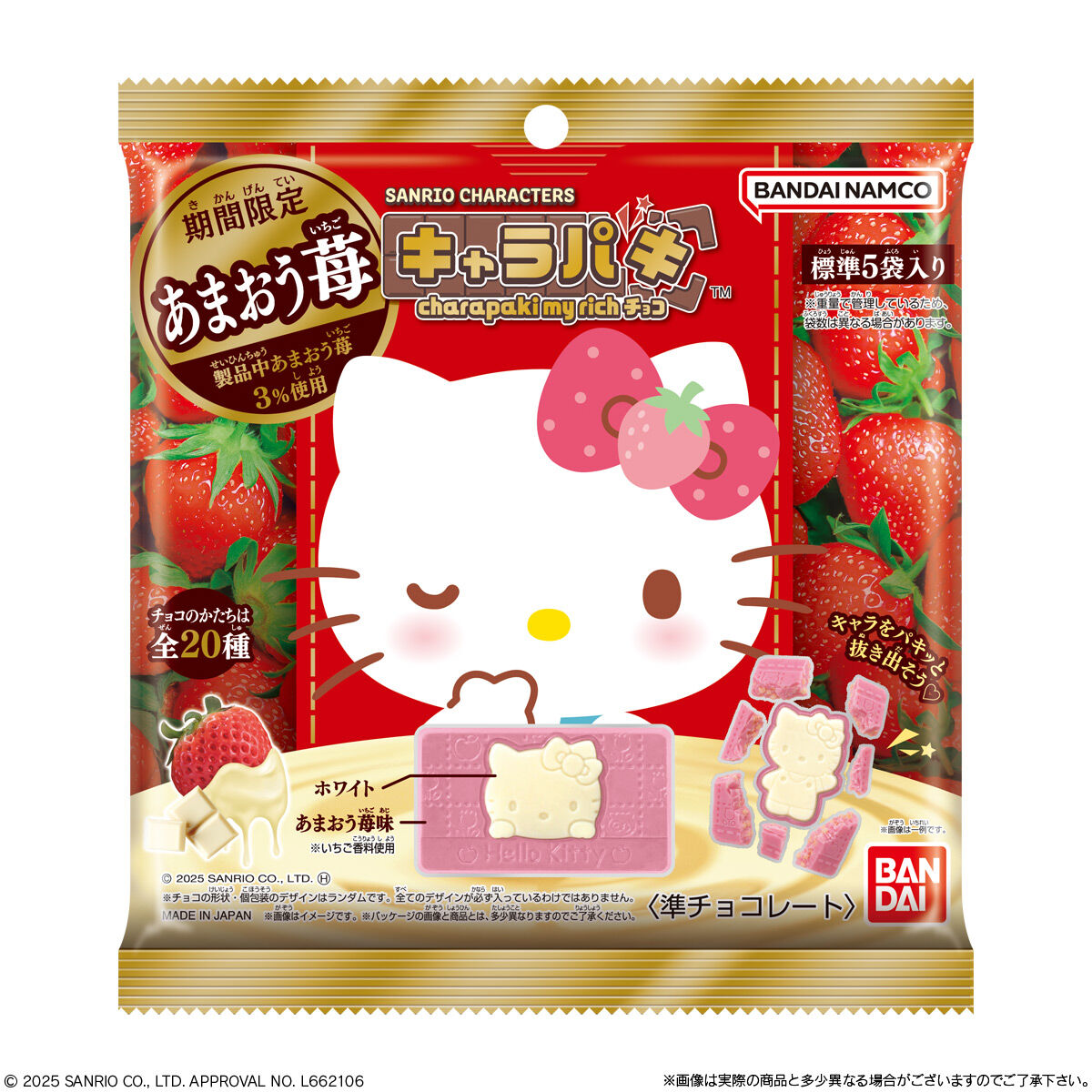 【现货包邮】代购日本进口BANDAI/万代三丽鸥联名草莓味巧克力5枚