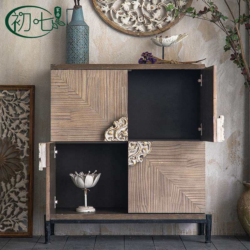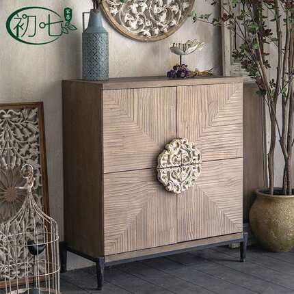 新中式实木做旧玄关柜 民宿成套家具复古装饰柜客厅厨房餐边柜子