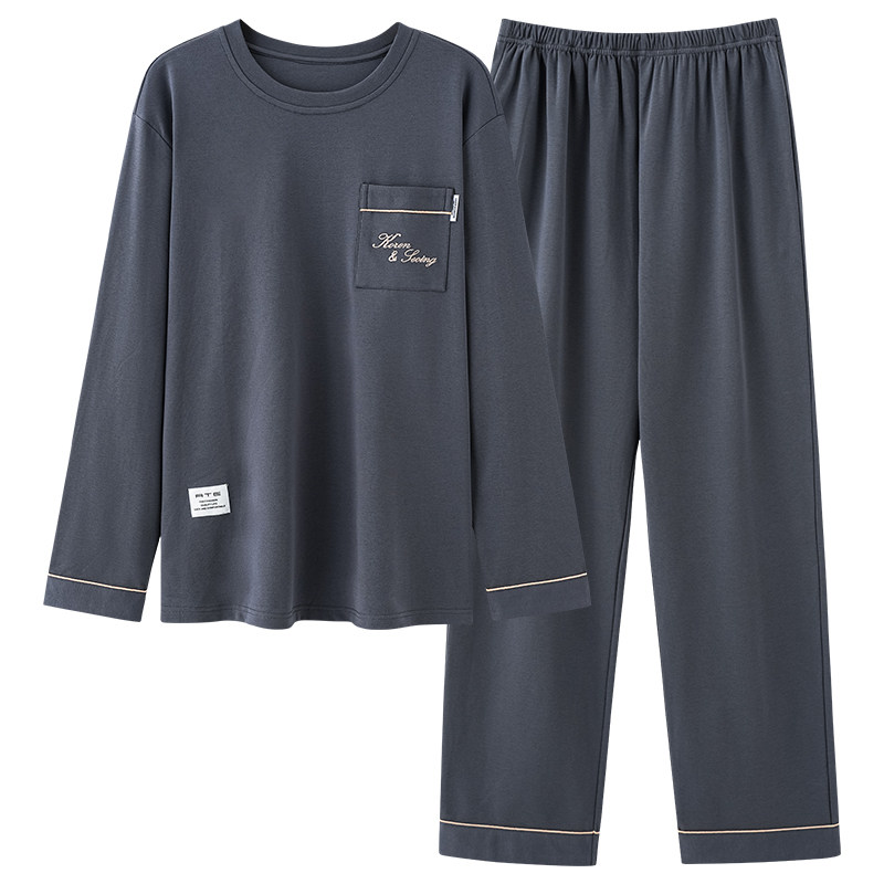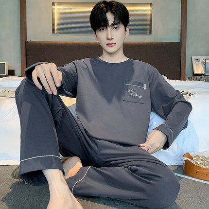 浪莎睡衣男春秋季纯棉圆领长袖休闲加大码可外穿高级感家居服套装