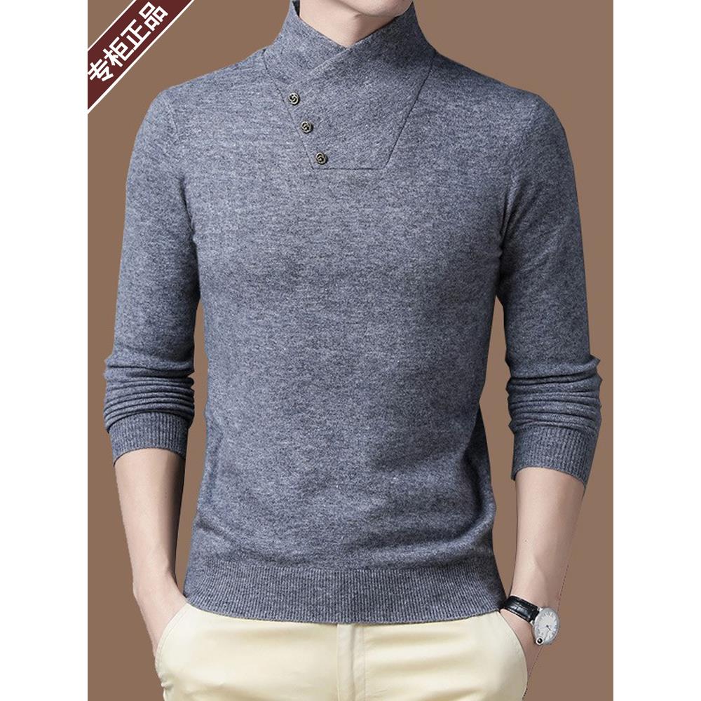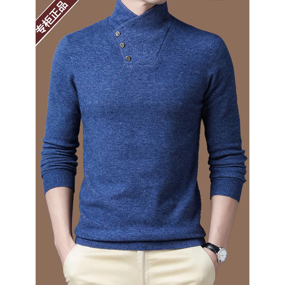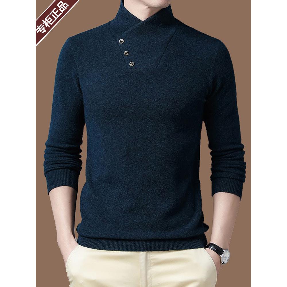 鄂尔多斯市高领羊毛衫男修身100%纯羊绒毛衣秋冬款加厚保暖打底衫