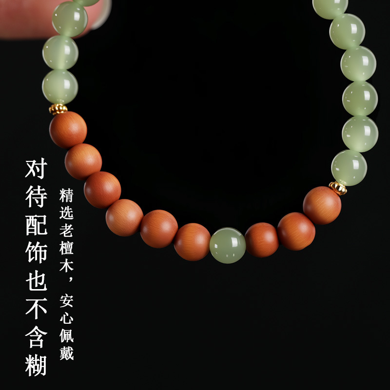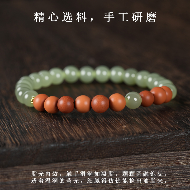 唐今玉天然和田玉半山半水老山檀和田玉手串送男友礼物高抛光单圈