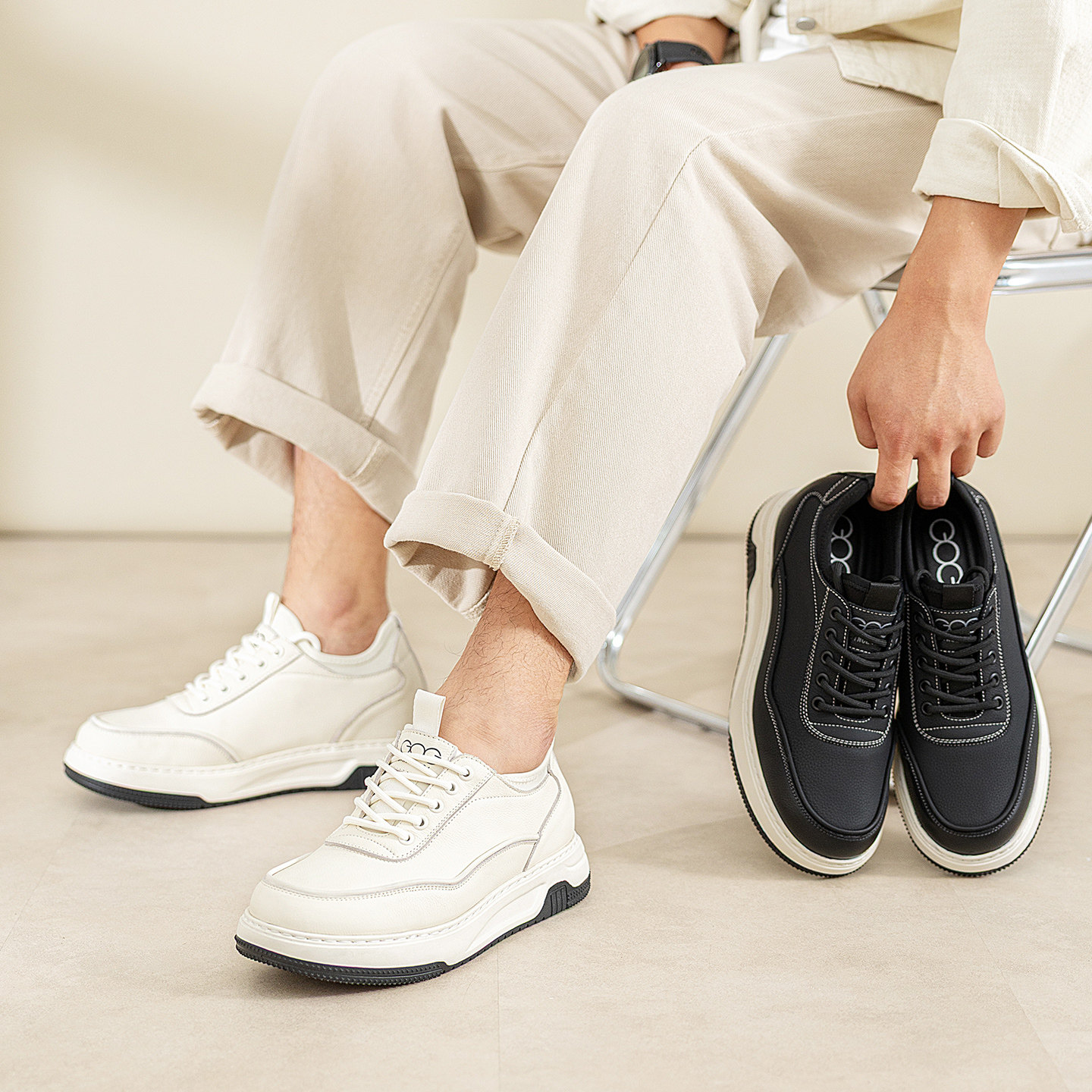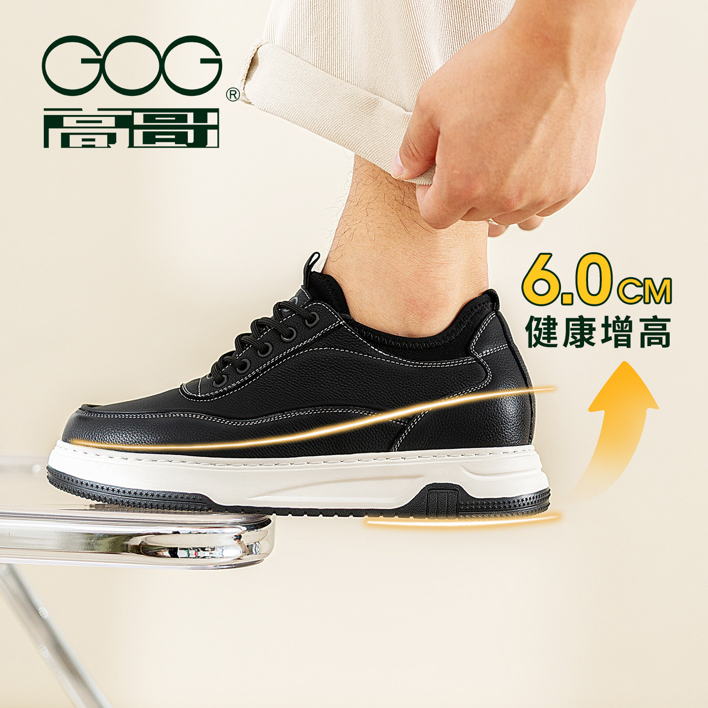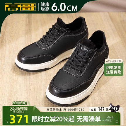 高哥增高板鞋男款头层牛皮男鞋轻便2026春季新款鞋子内增高休闲鞋