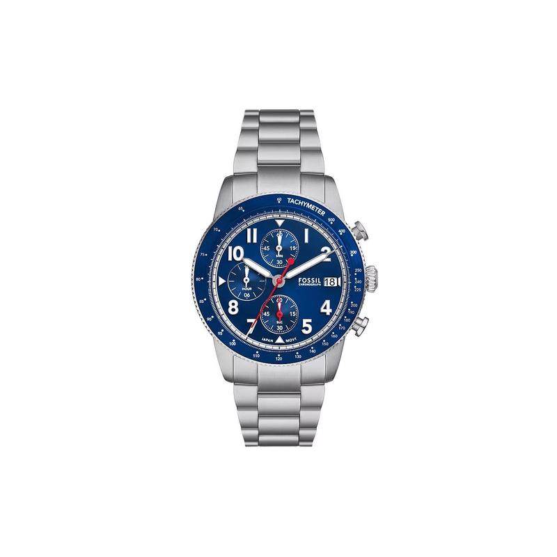 代购Fossil化石男士腕表计时日期夜光测速钢带蓝色防水金属商务