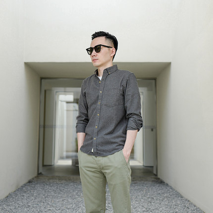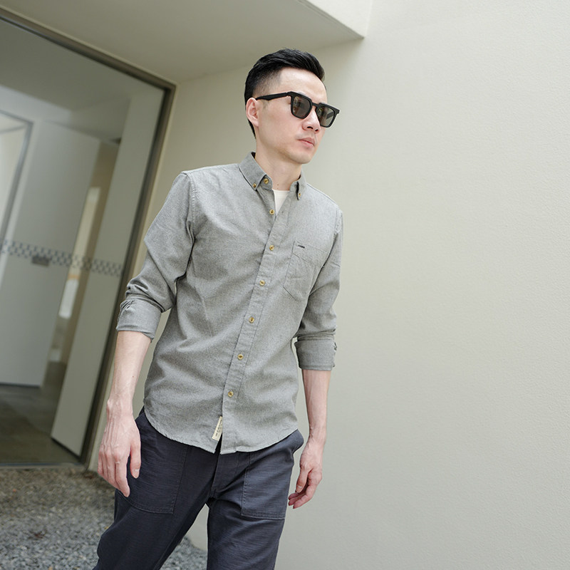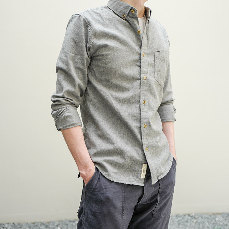 男士长袖衬衫2025新款纯棉色纺磨毛时尚休闲纯色宽松衬衣外套男潮