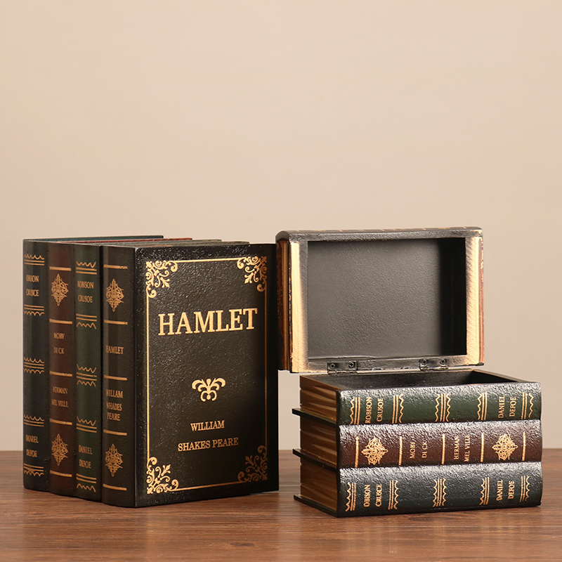 复古仿真书摆件桌面电视柜木盒装饰展示柜书柜假书创意大号收纳盒