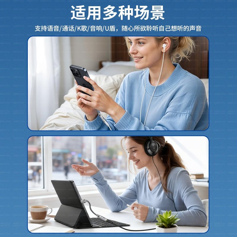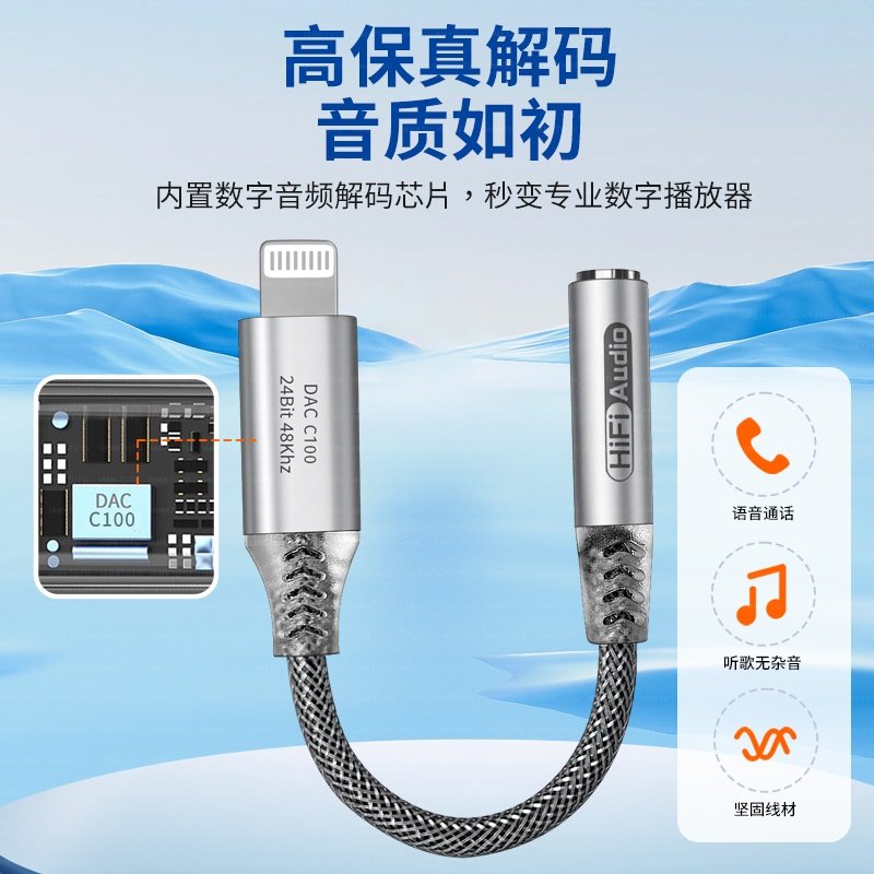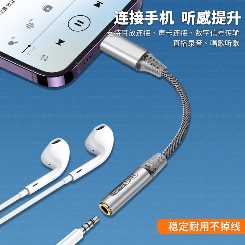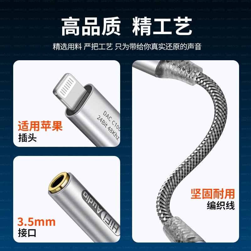 适用苹果手机lightning转3.5mm耳机转接线dac音频耳放解码小尾巴C100芯片网银U盾iPhone14/13/12平板11Promax