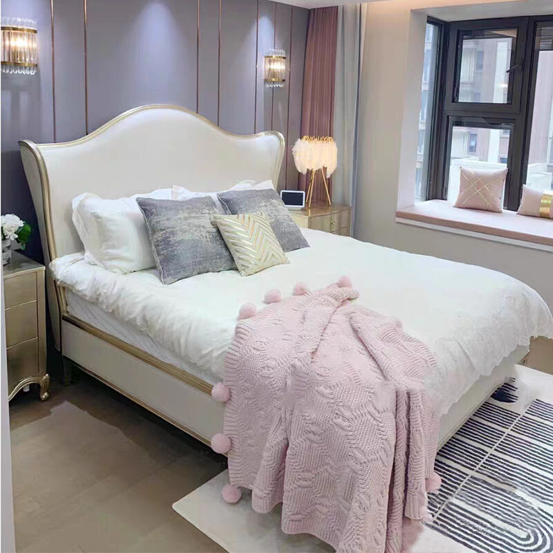 实木双人简约现代卧室婚床简欧布艺公主床美式主卧家具1.8米大床