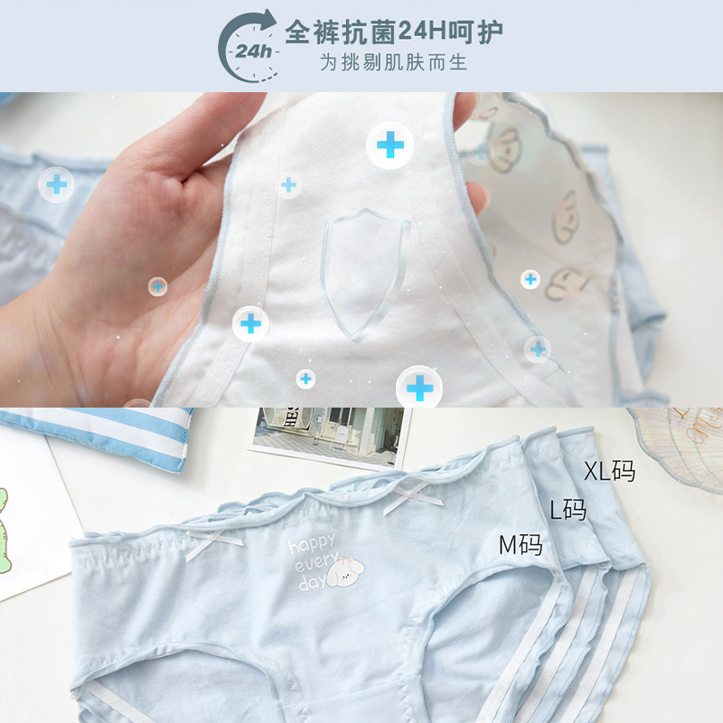 小帕小帕!7A类抗菌内裤纯棉女生可爱少女学生浅色婴儿棉女士短裤