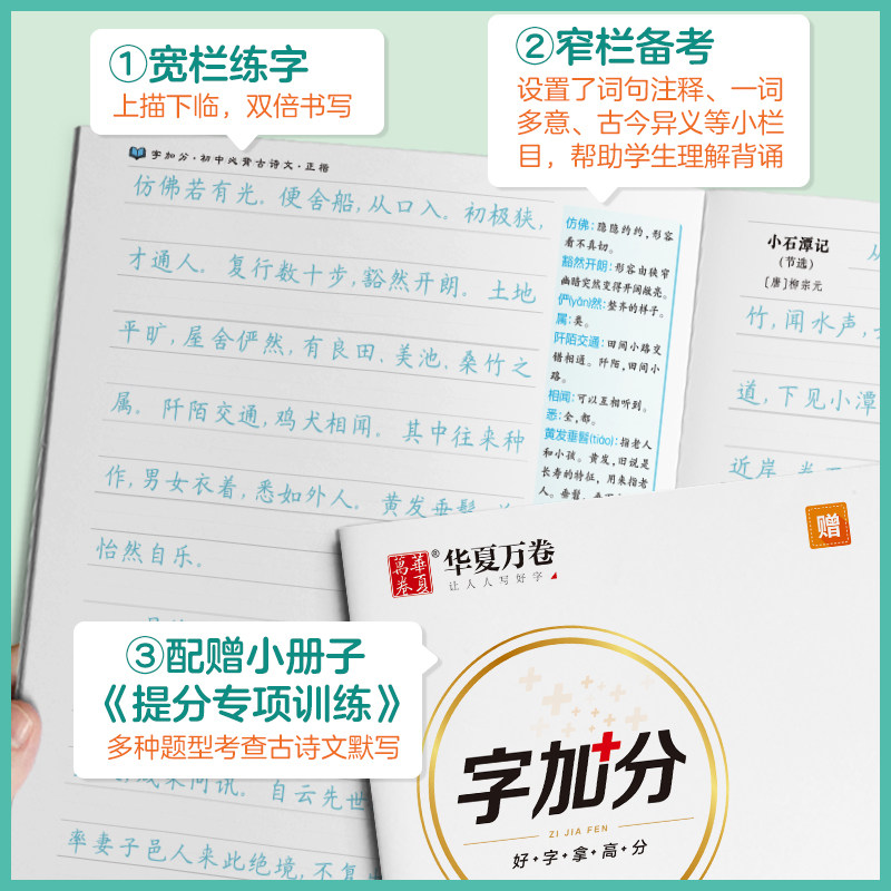 初中生必背古诗文132篇字帖初中生古诗词字帖文言文语文硬笔楷书字帖临摹描红中学生钢笔练字中考加分古诗规范字体华夏万卷练字帖