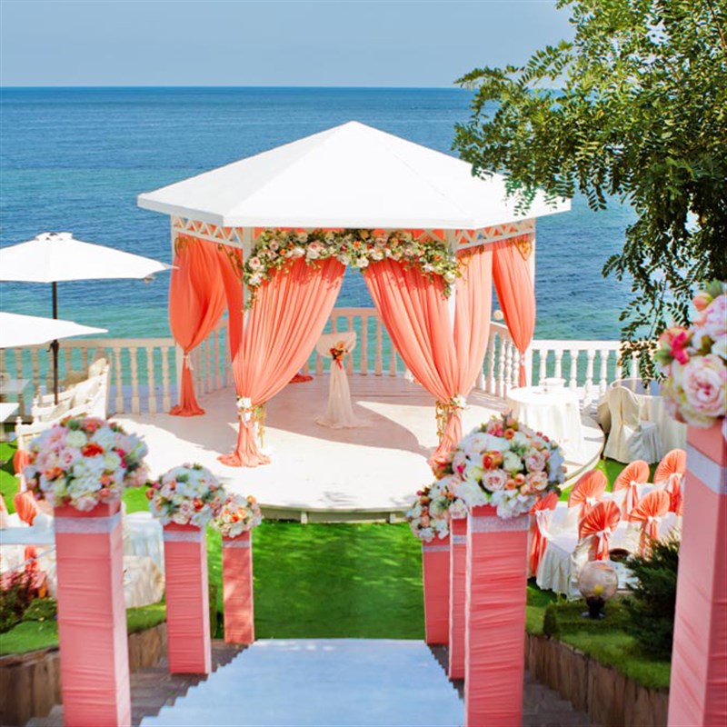 婚庆背景纱幔舞台装饰场景布置甜品台桌布桌幔裙边冰绸布婚礼布幔