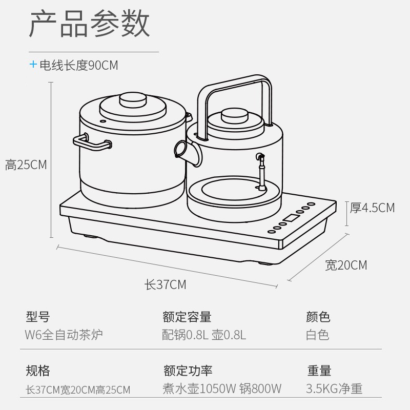 新功W6全自动底部上水玻璃电热烧水壶智能茶具抽水茶台一体电磁炉