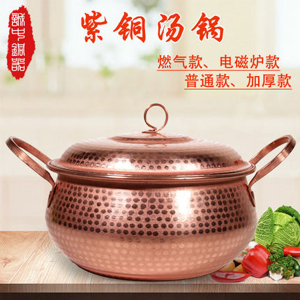 云南铜锅手工双耳汤锅纯紫铜炖锅纯铜加厚家用电磁炉专用汤煲火锅