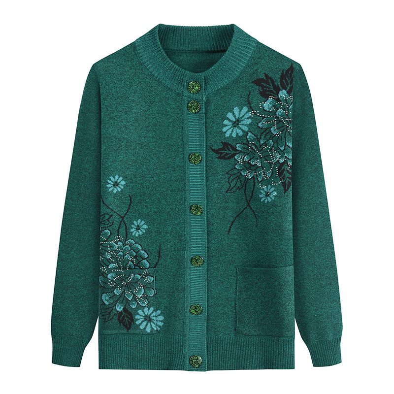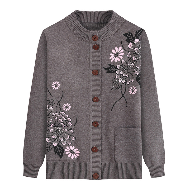 中老年春秋冬装女妈妈圆领毛衣开衫老人羊毛衫针织外套奶奶衣服装