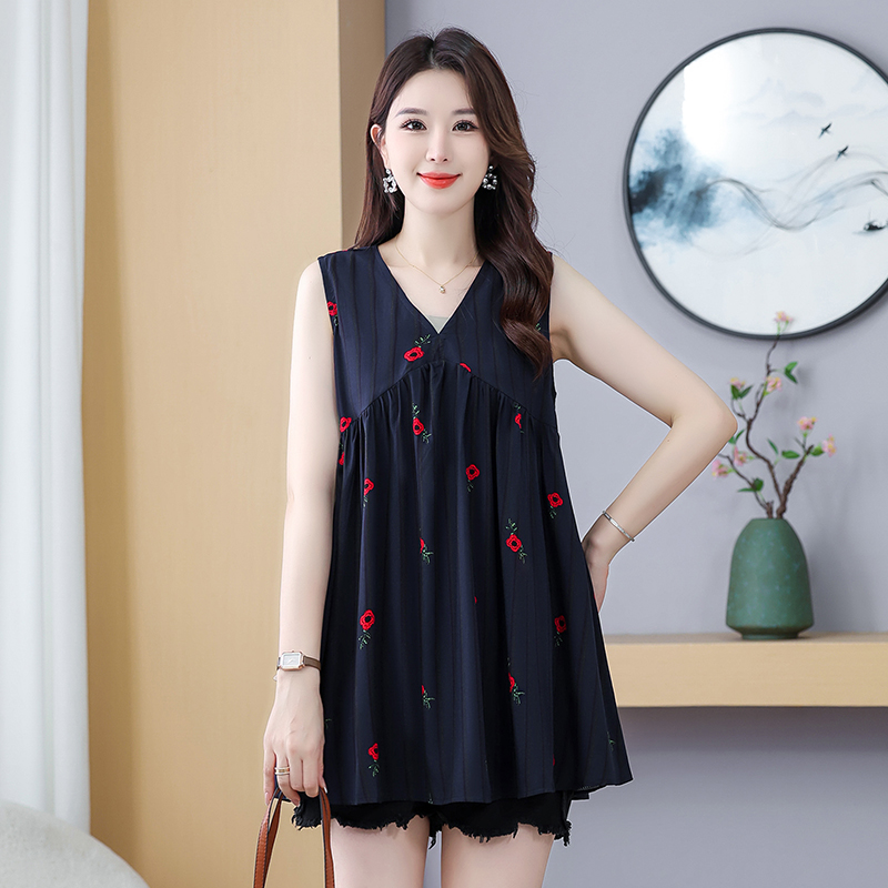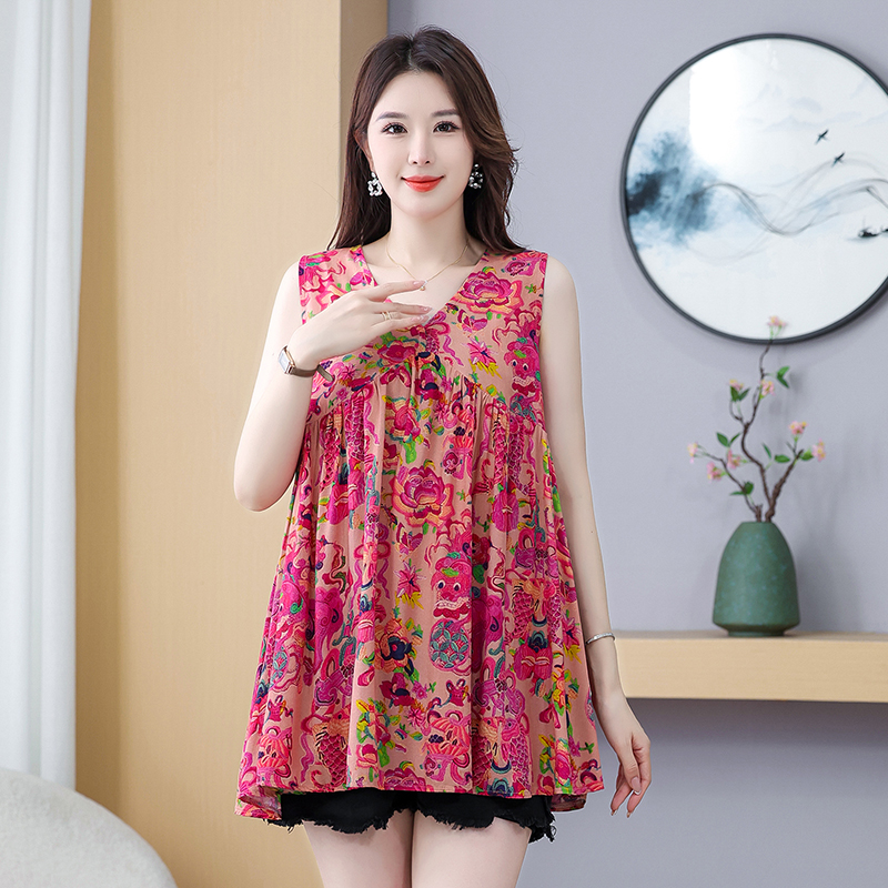 2025女士夏季无袖棉绸宽松背心T恤人造棉娃娃衫减龄洋气外穿上衣