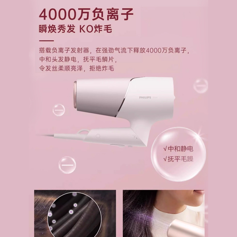 飞利浦电吹风机大功率高风速干负离子恒温护发BHD538官方正品