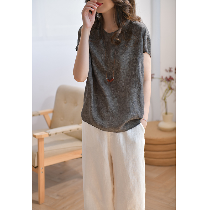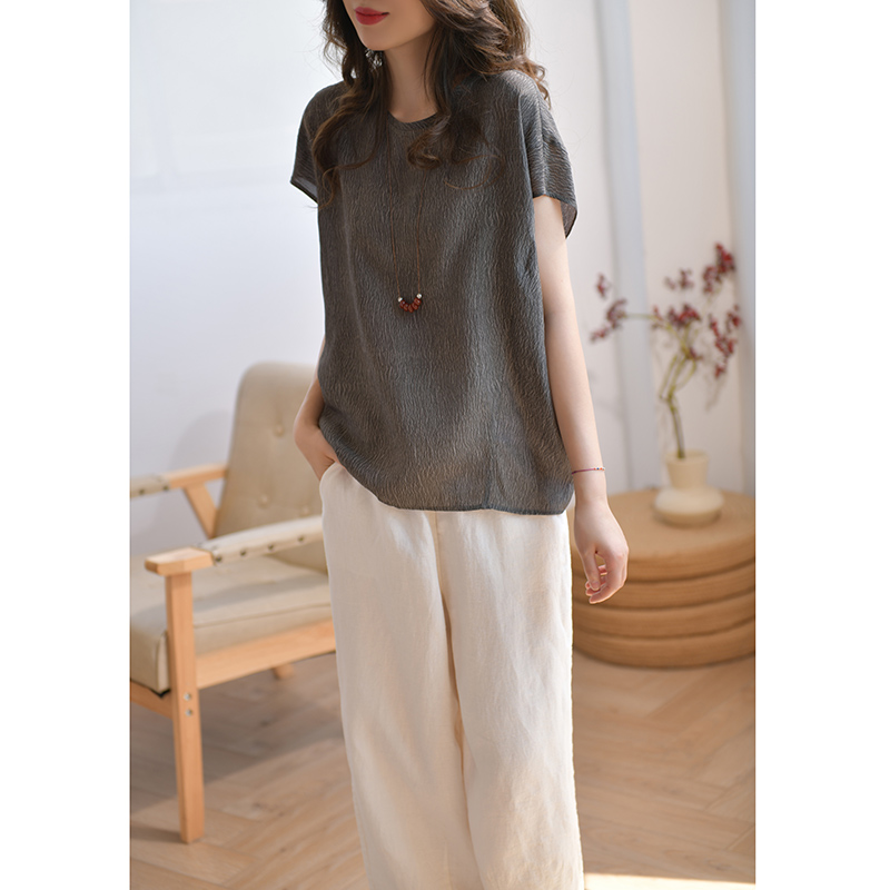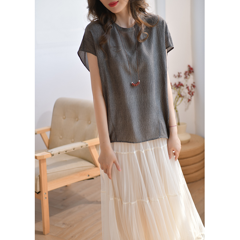 GESGOO珍珠绉13姆米真丝衬衫女短袖夏季肌理感桑蚕丝上衣宽松遮肉