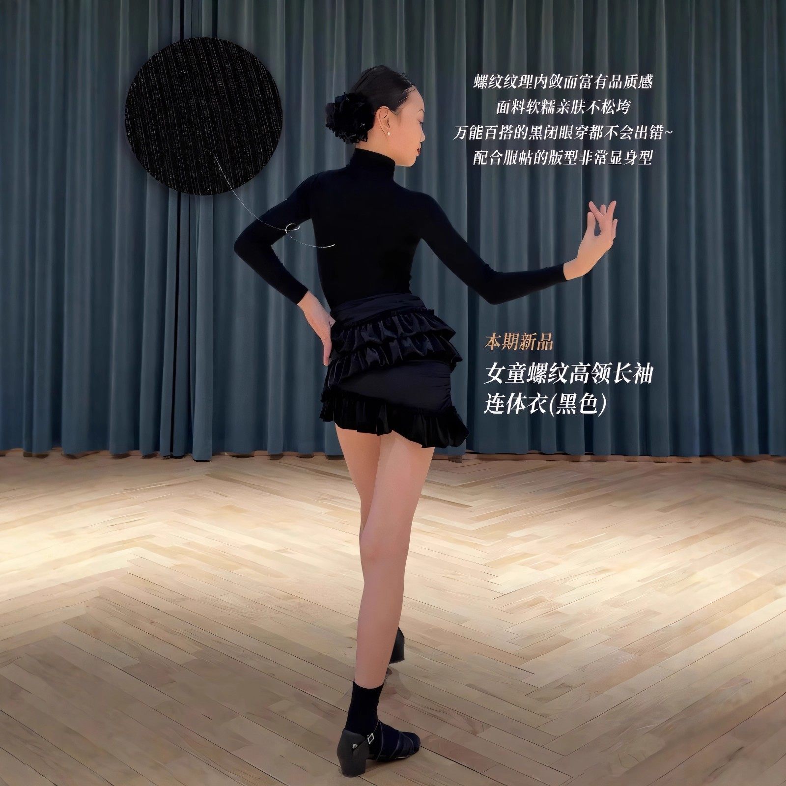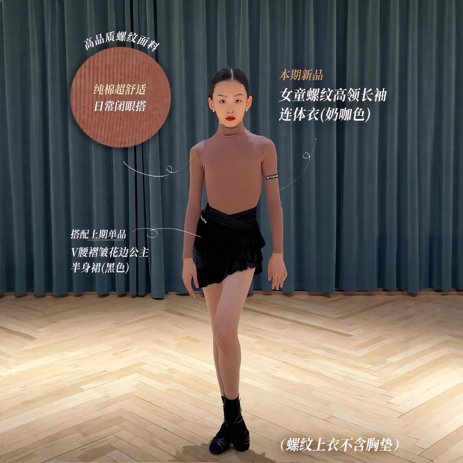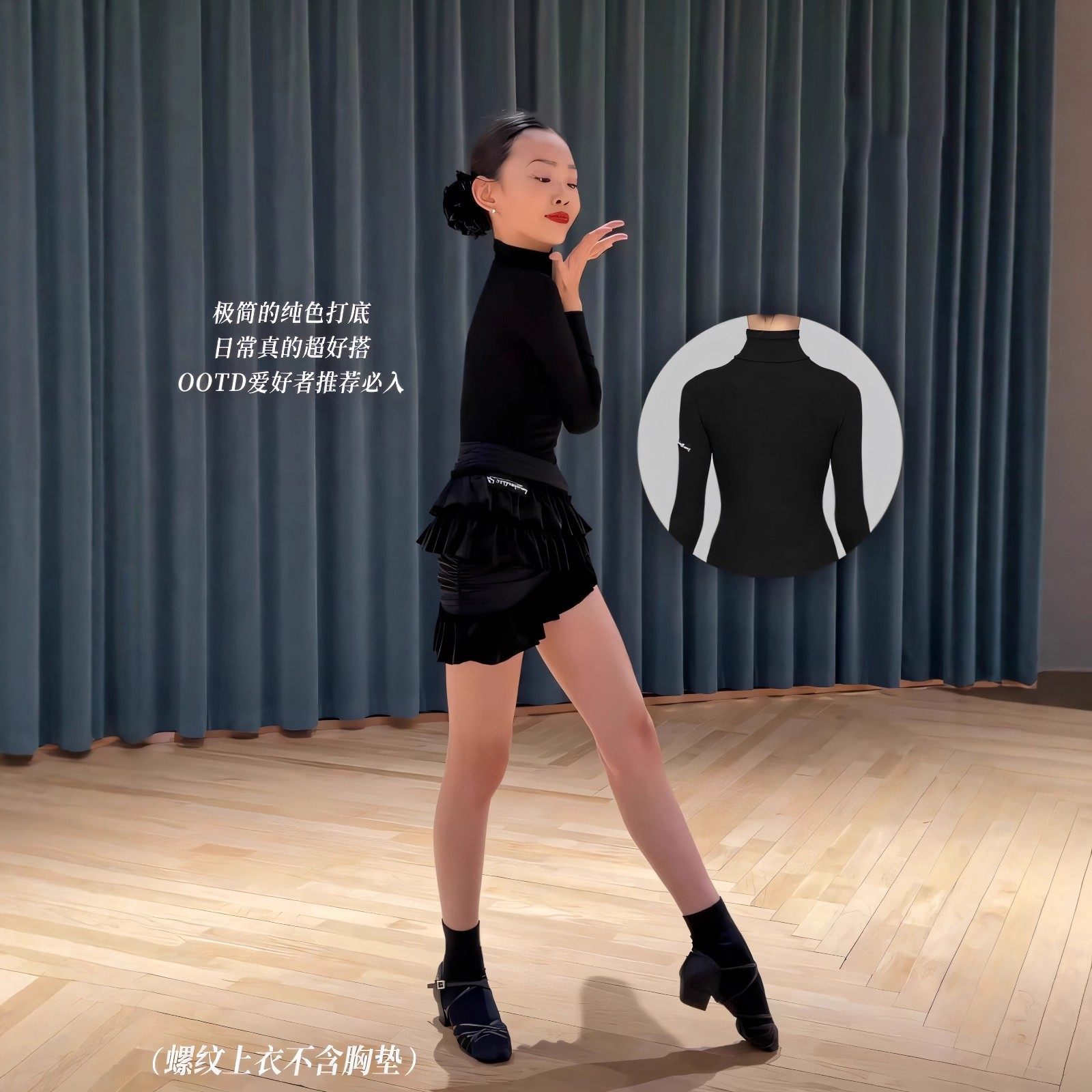 2026秋冬季新款女童拉丁舞服练习服长袖百搭高领上衣V腰包臀裙