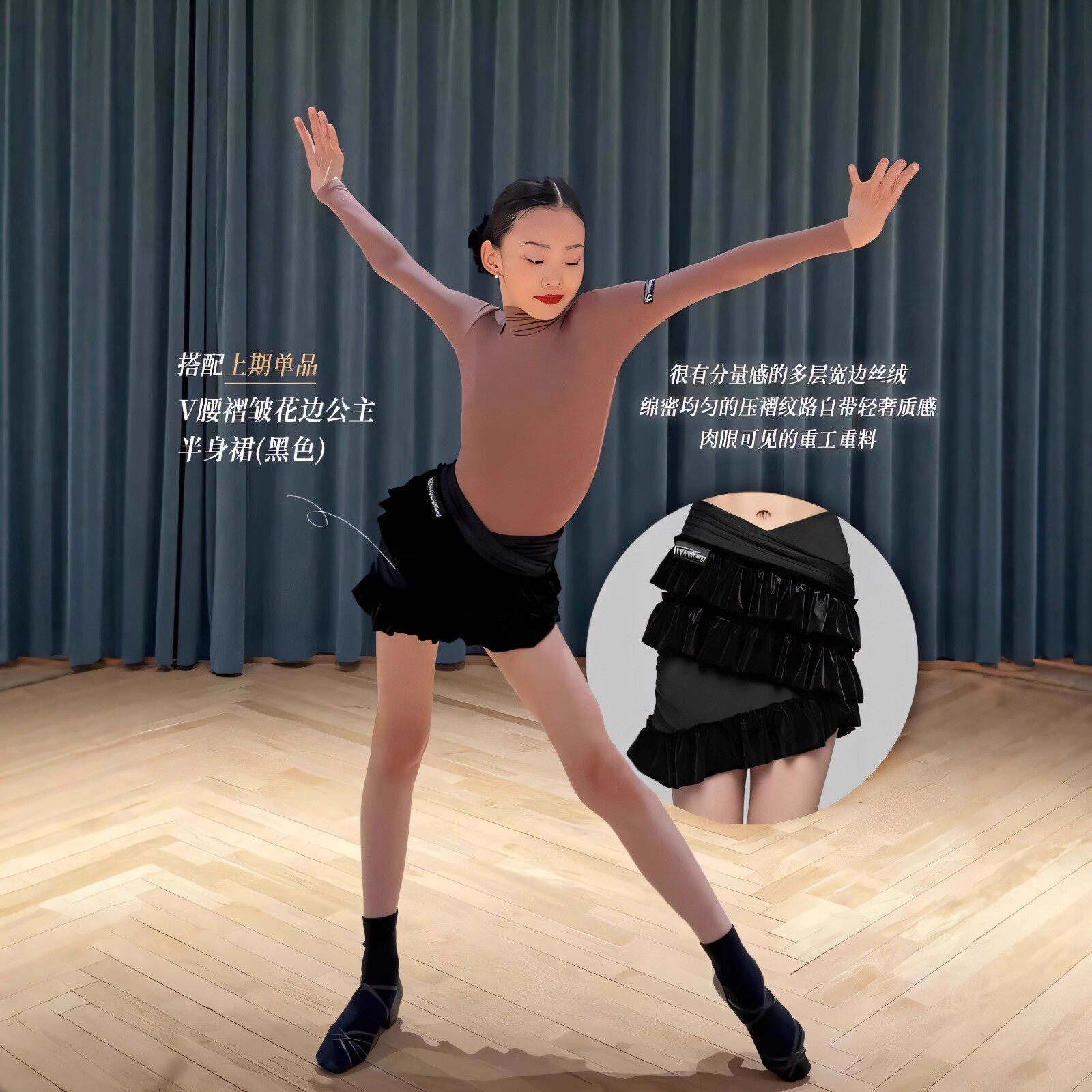 秋冬女童拉丁舞服百搭上衣V腰裙
