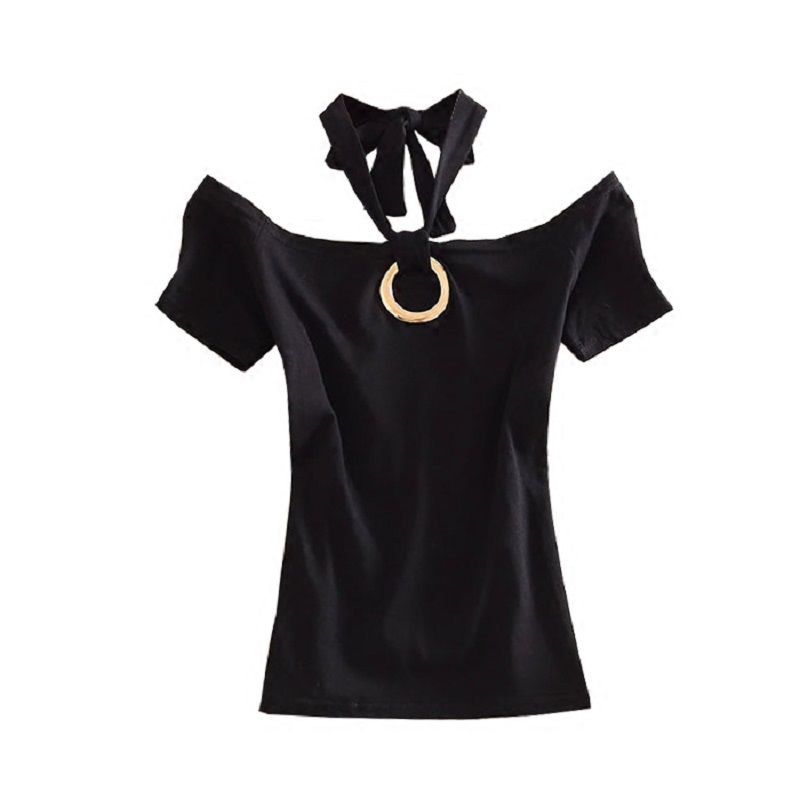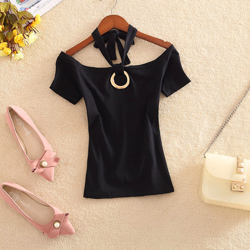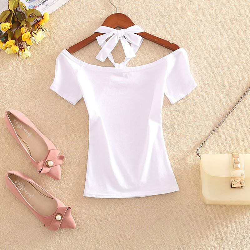 夏季新款女装体恤一字领露肩挂脖短袖T恤修身显瘦性感百搭上衣潮