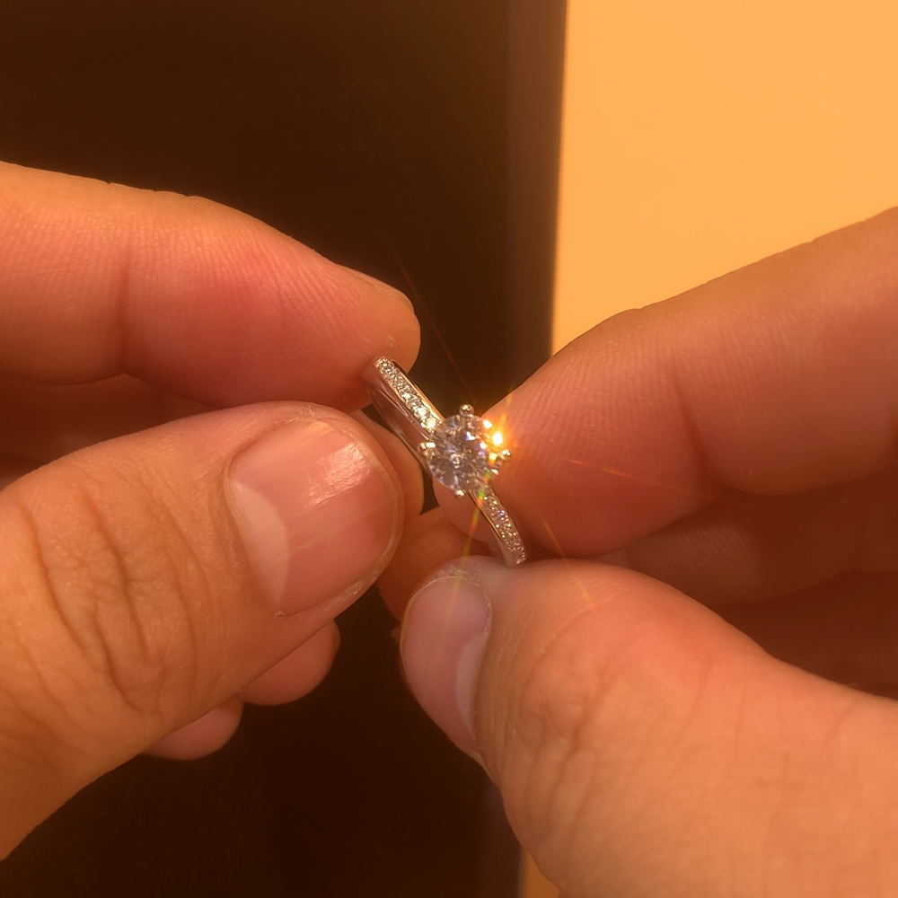 S925纯银四爪女款莫桑钻石戒指