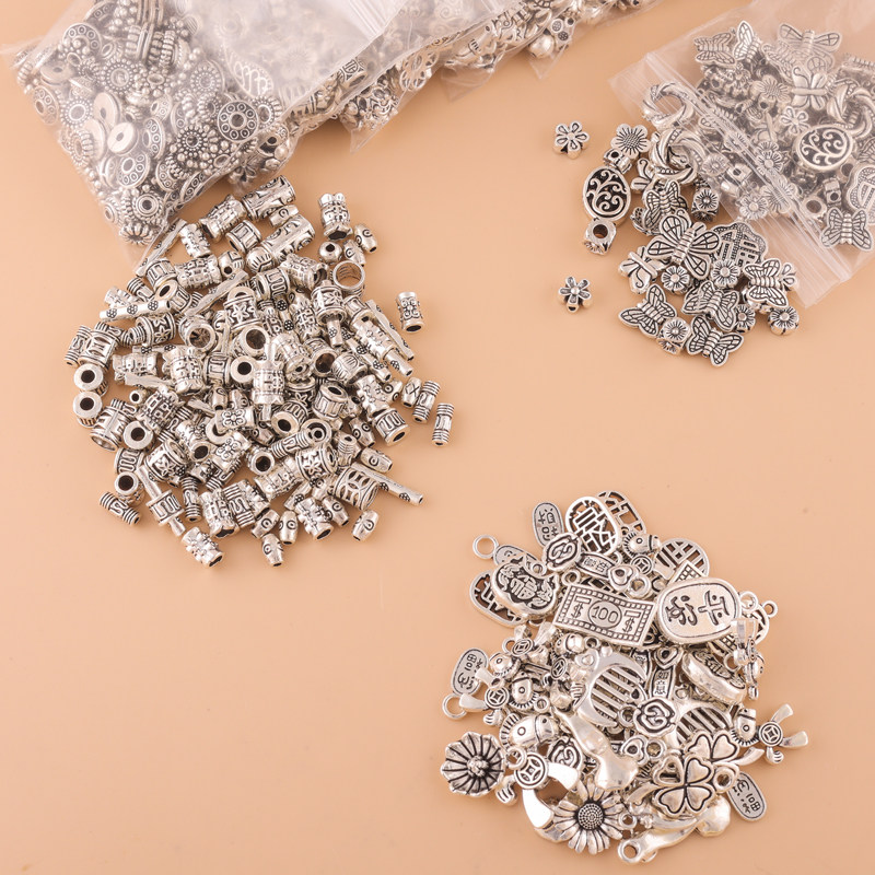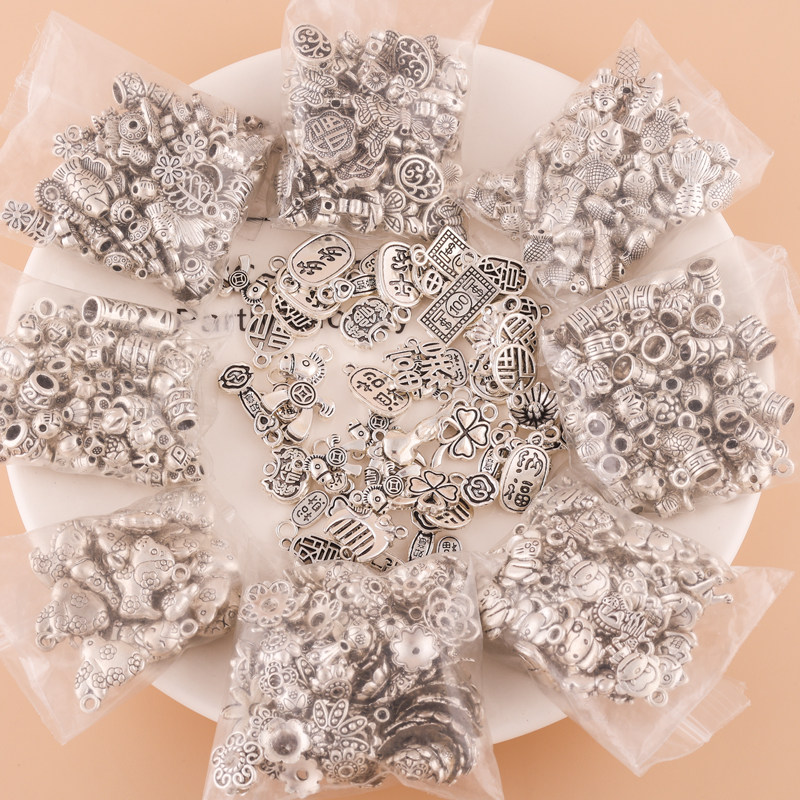 藏银配件包50克混装吊坠 花托隔珠串孔鱼配件材料diy手链脚链配饰