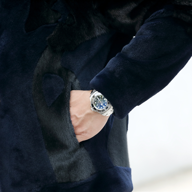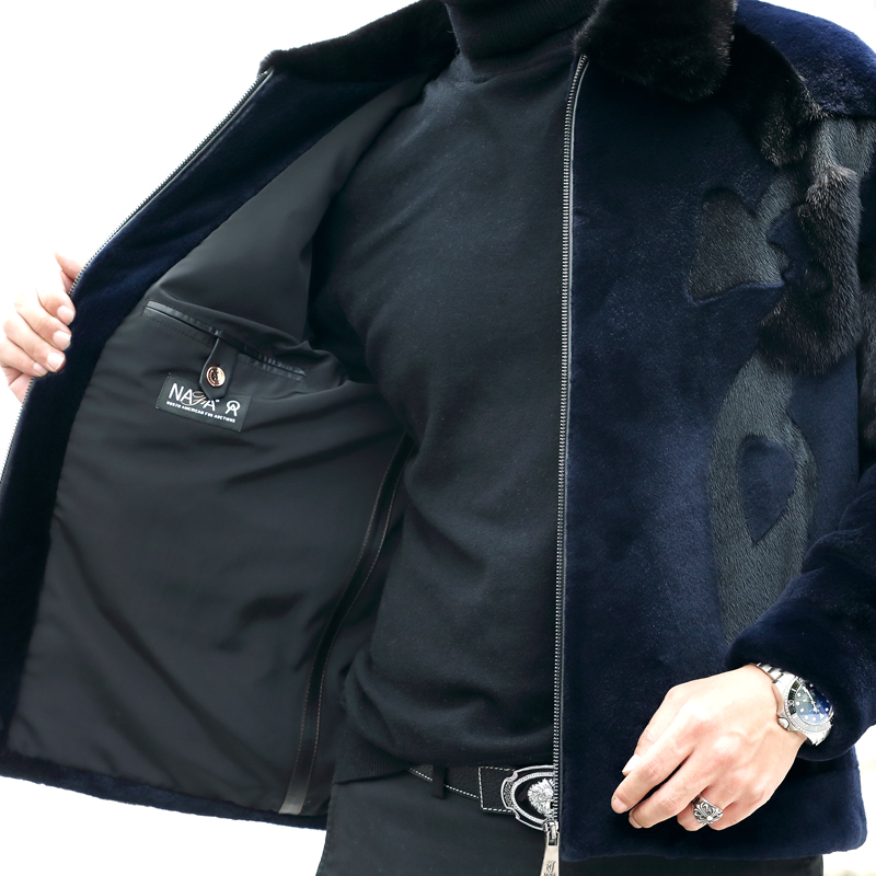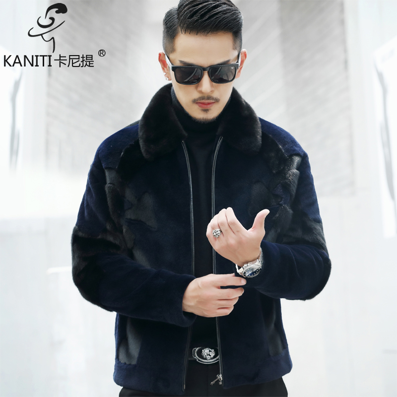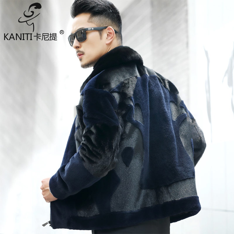美国貂水貂绒男士裘皮皮草短款翻领真皮皮衣貂皮夹克青年机车