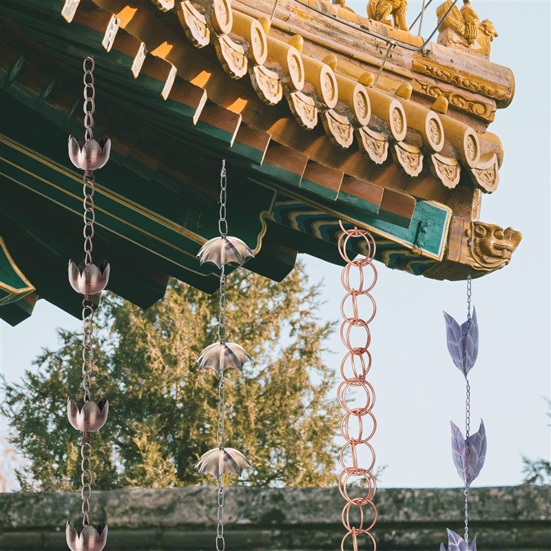 中式紫铜庭院雨链屋檐落水引水链别墅天沟排水槽滴水链民宿雨水链