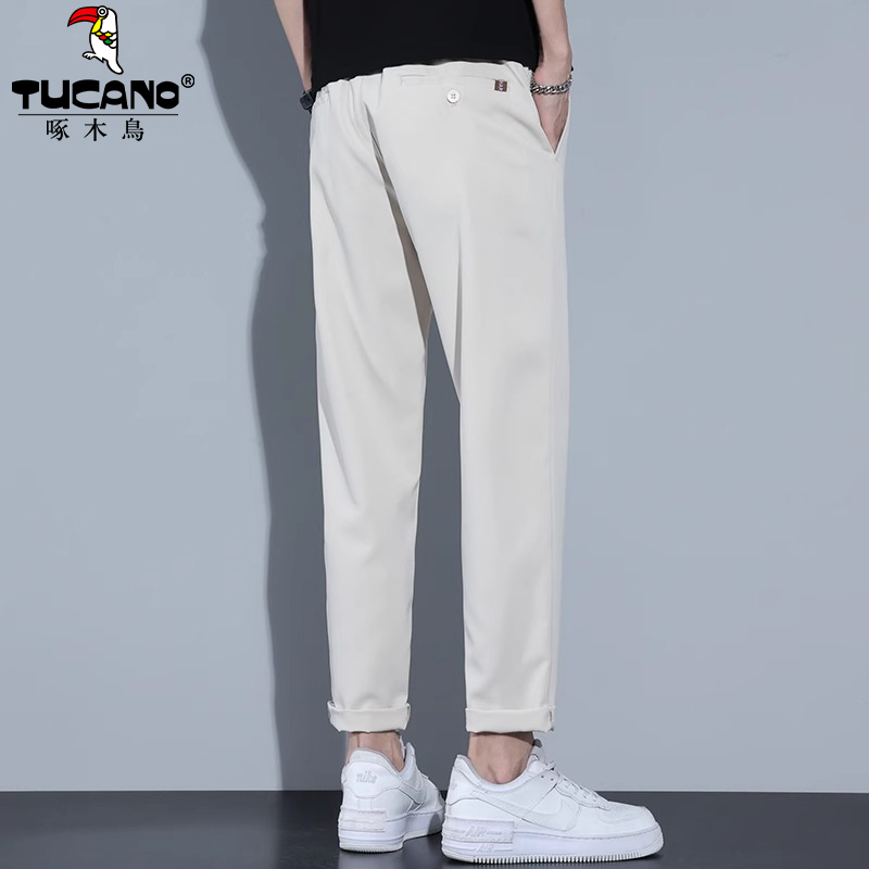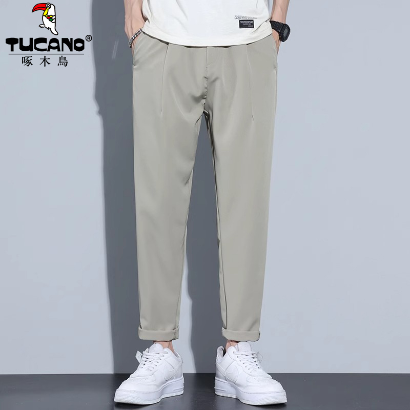 啄木鸟夏季薄款休闲裤男宽松直筒小西裤垂感冰丝长裤子男2025新款