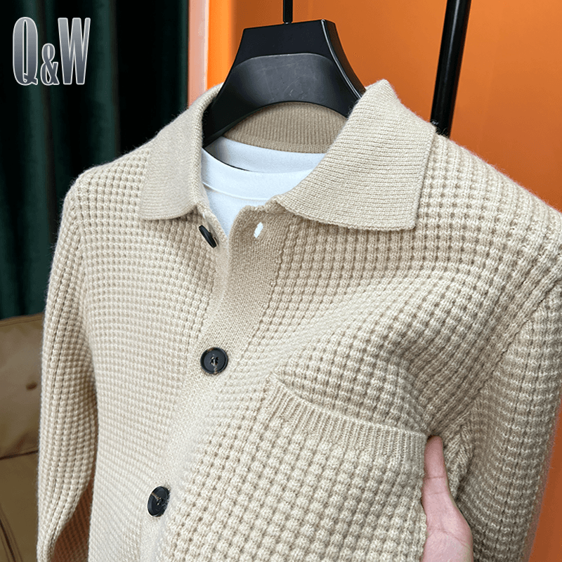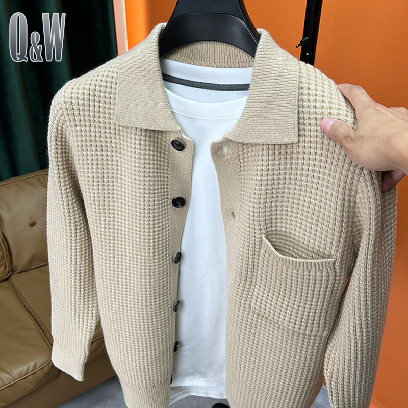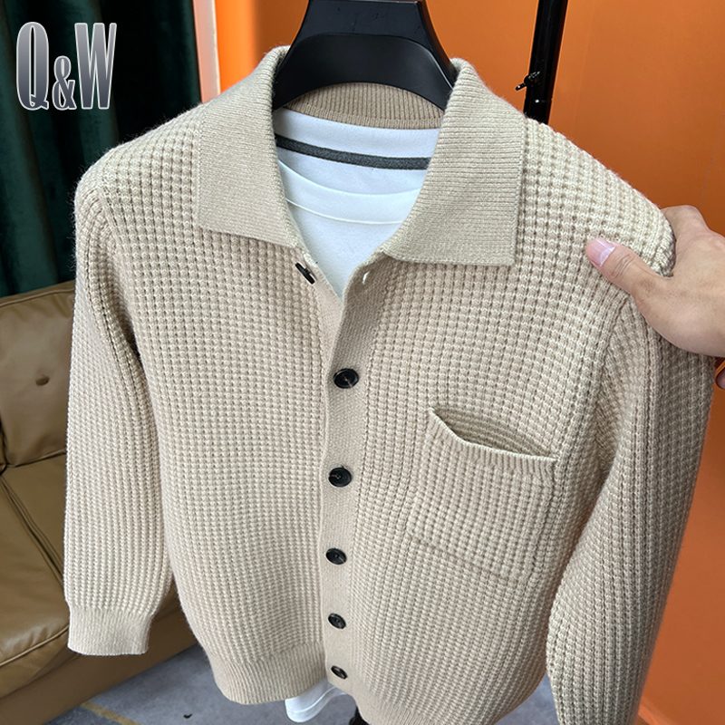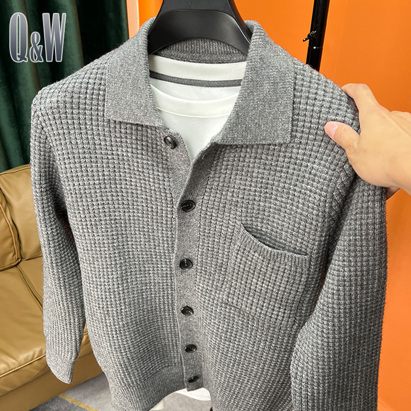 开衫毛衣男款爆款2023新款日系复古针织外套男装翻领线衣服有口袋