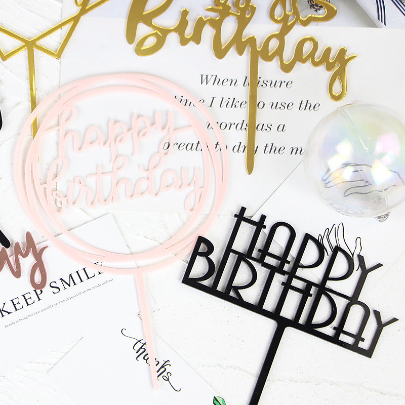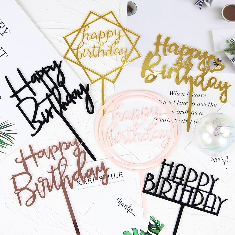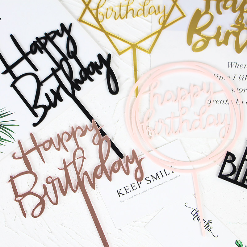 亚克力蛋糕装饰插牌闪耀镜面生日快乐创意烘焙网红蛋糕插件10枚装