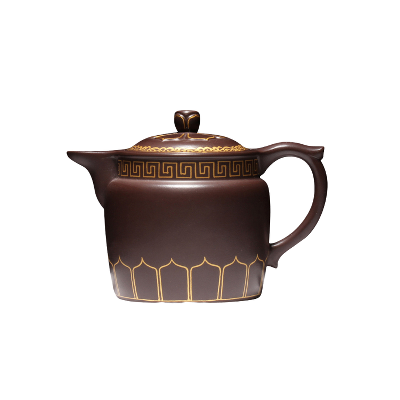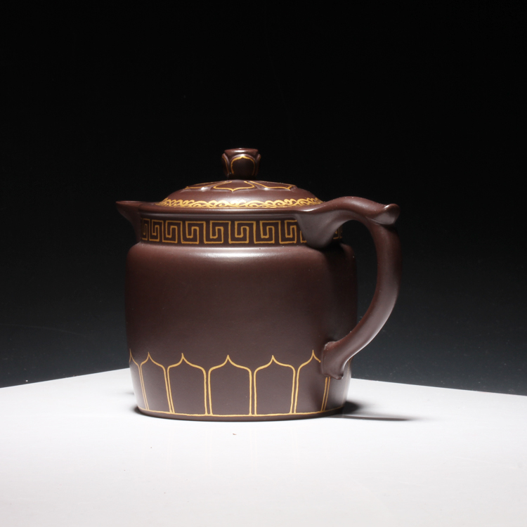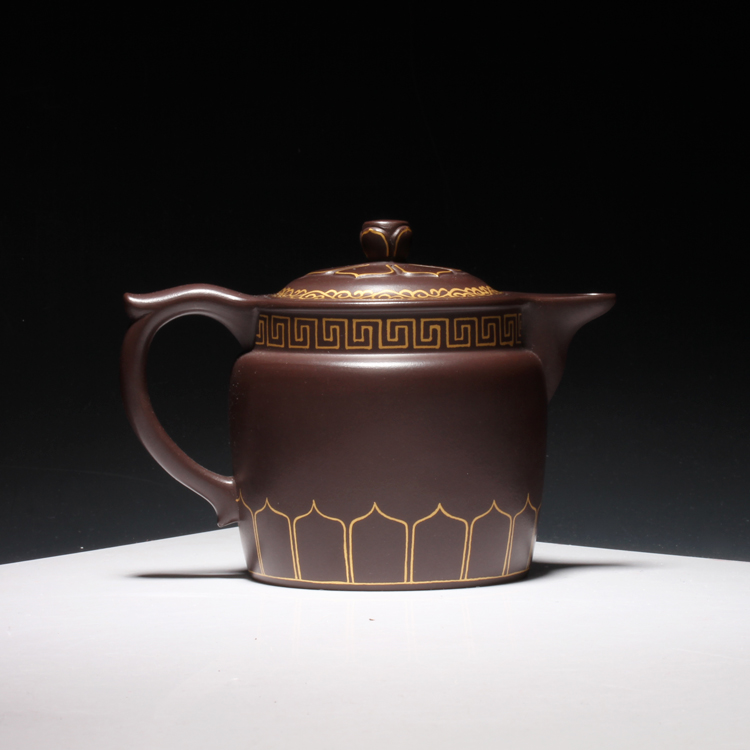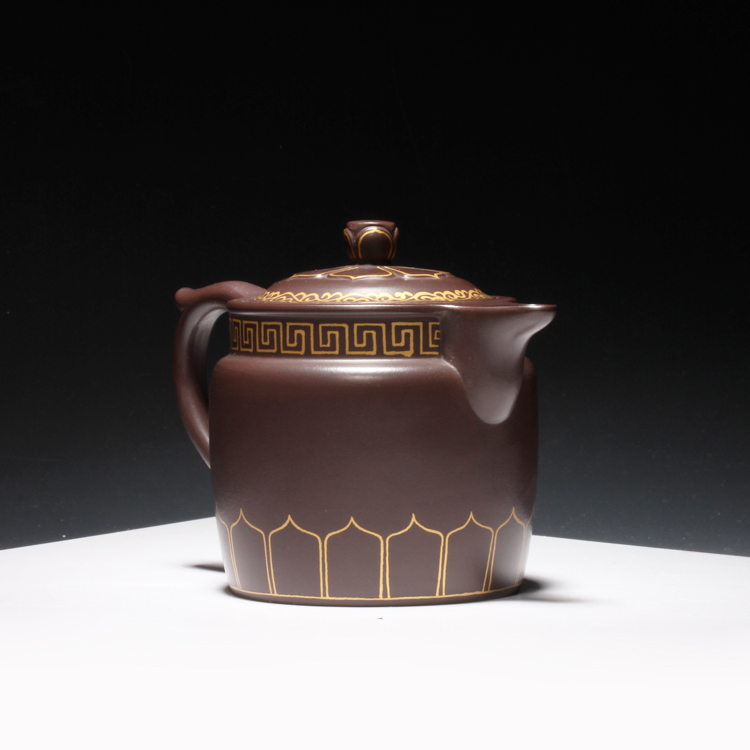 宜兴紫砂茶壶工艺师王红娟纯手工制描金僧帽壶功夫茶具原矿紫泥壶