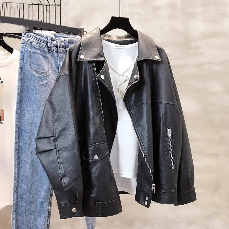 黑色皮衣外套女2025春秋港风复古宽松短款小个子大码机车pu皮夹克